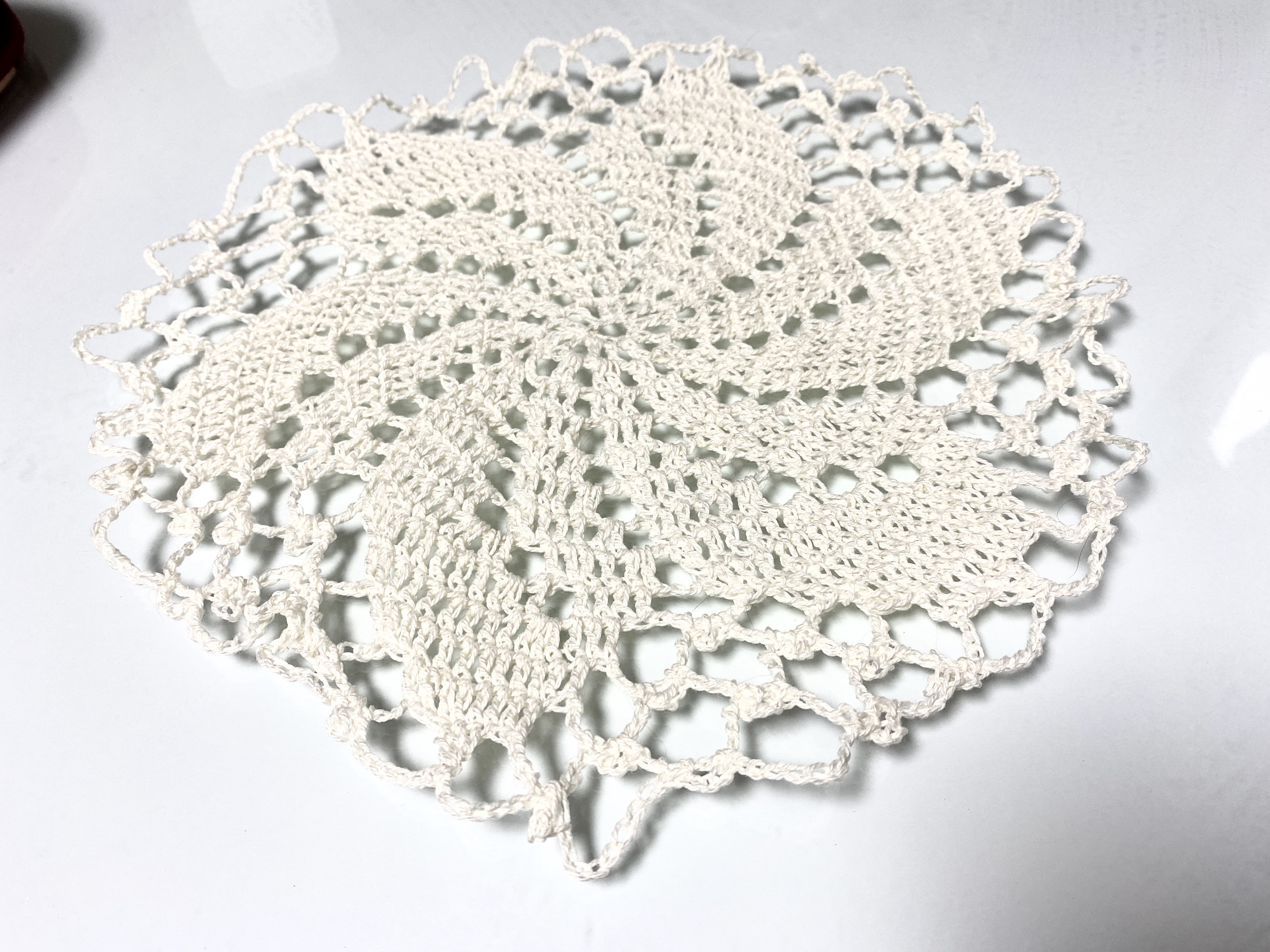 친구한테 요즘 도일리 뜨는 게 재미있다고 했더니 도안을 보내줬다. 더 뜰 생각이 별로 없었는데, 도안을 보니 또 뜨고 싶어져서 이번엔 하얀색 실을 잡았다.