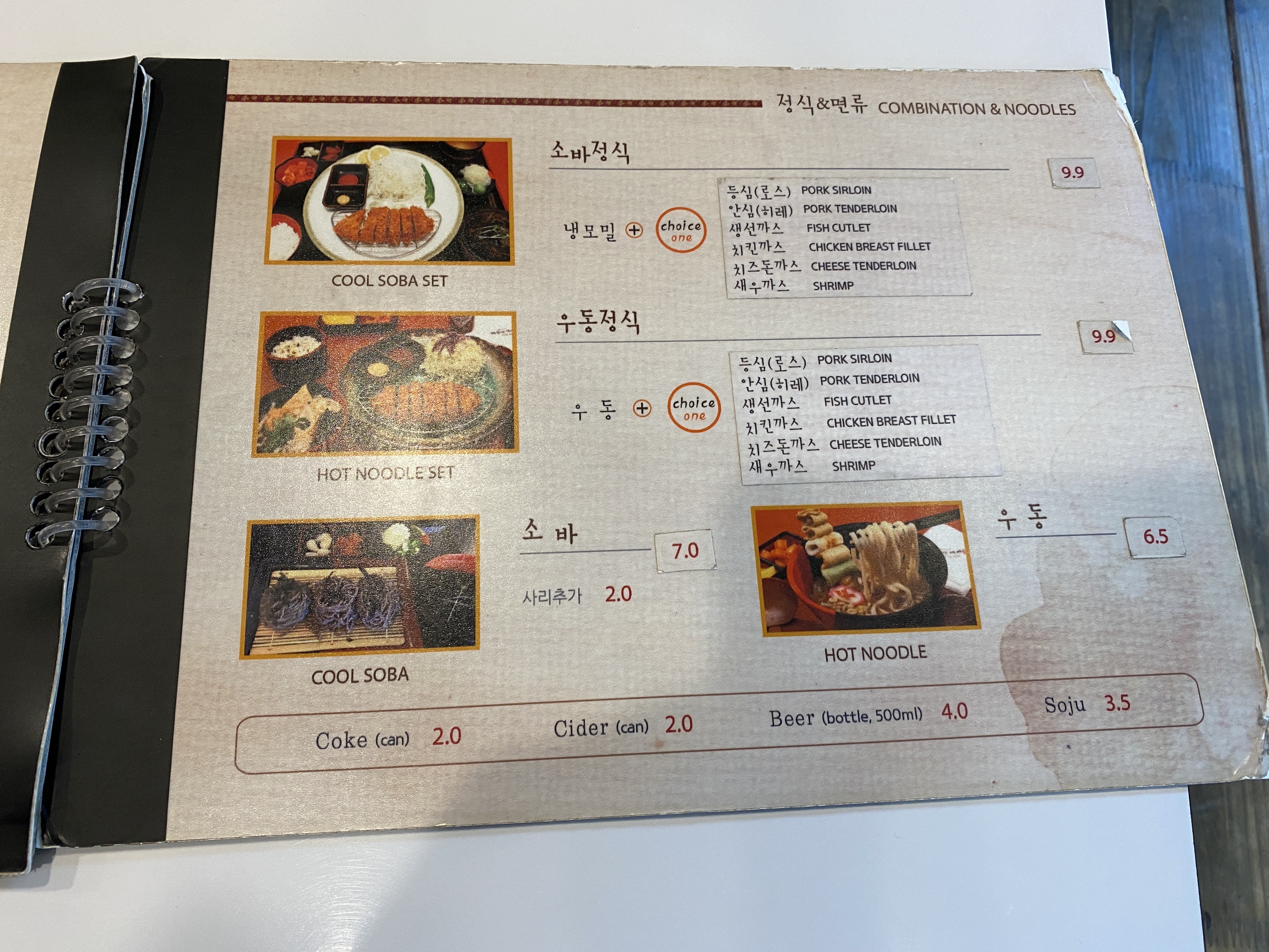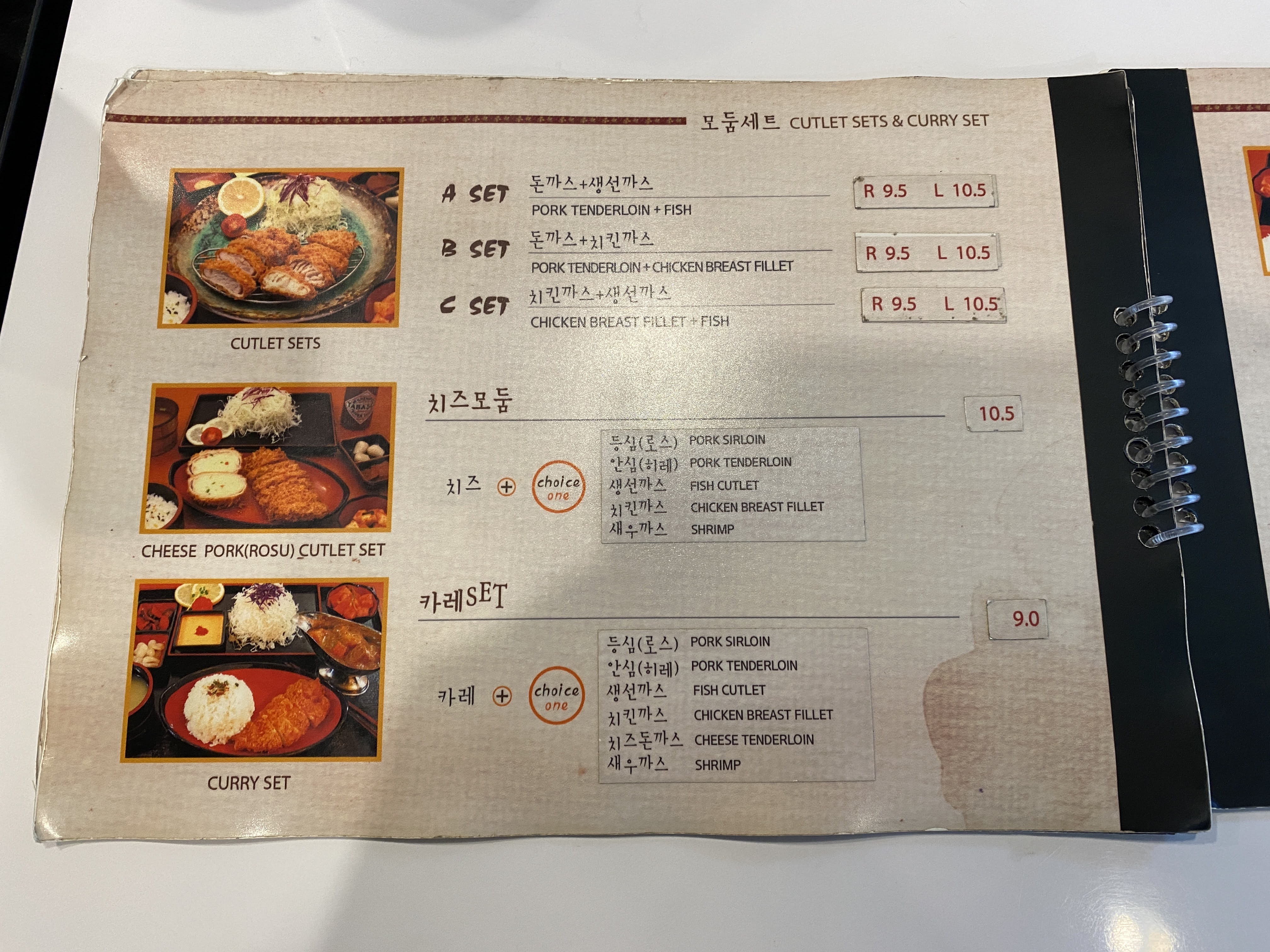 지인은 치즈돈까스를 시키고, 나는 치즈 모둠을 시켰다. 선택은 안심 돈가스로! 돈가스뿐만 아니라 소바랑 우동도 있고, 이 둘을 곁들인 세트 메뉴도 있다.