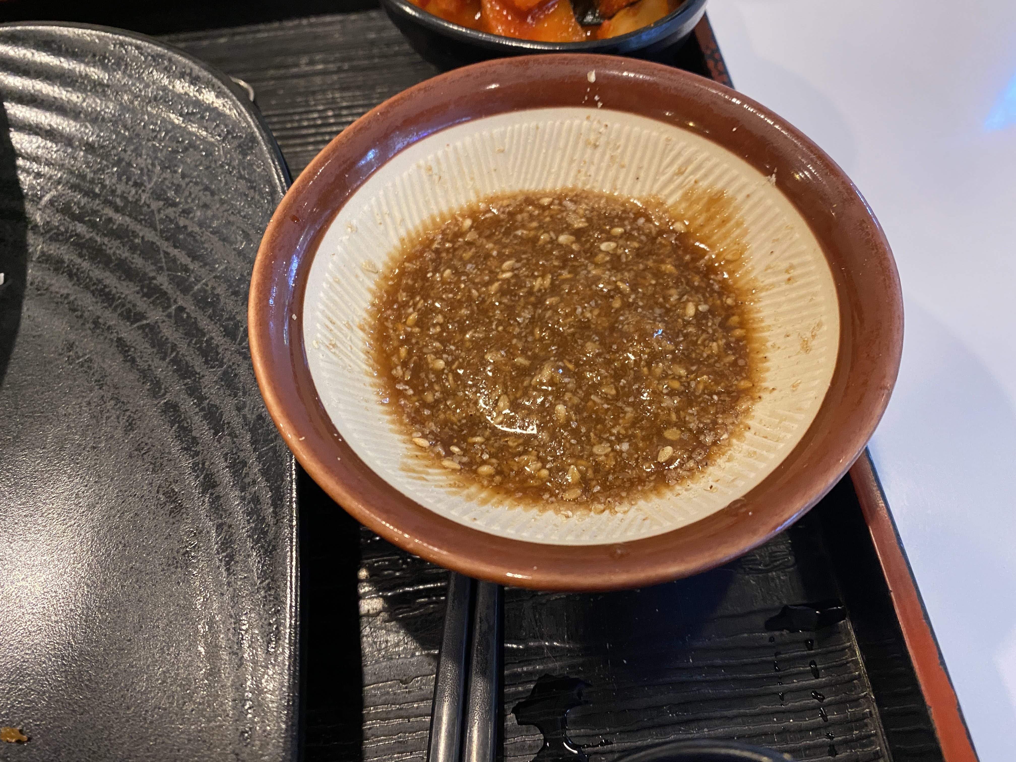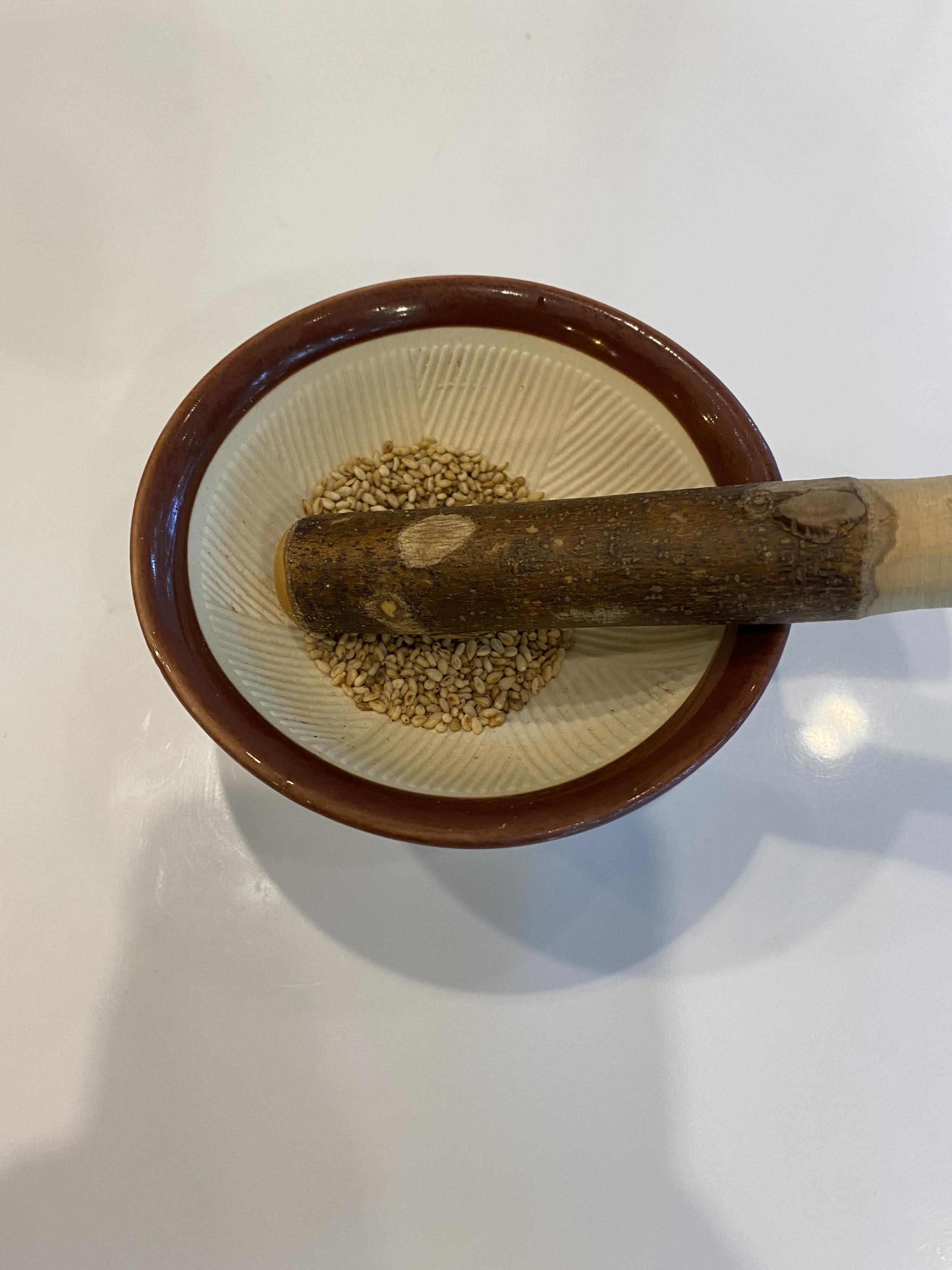 메뉴를 주문했더니 이렇게 깨와 작은 절구를 주었다. 열심히 깨를 갈면 된다. 깨를 갈면 꼬소한 냄새가 샥 퍼지는 게 입맛이 쓰악 하고 돈다.