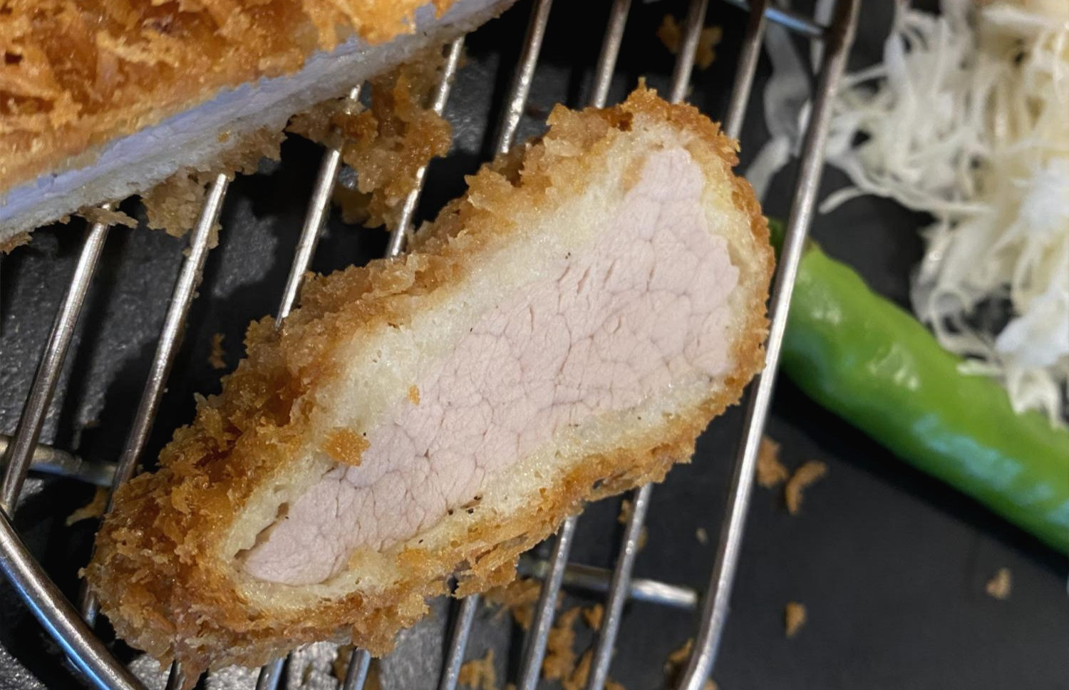 가까이에서 찍어본 치즈 돈까스의 예쁜 단면. 흘러넘칠 것 같은 치즈가 보기 좋다.