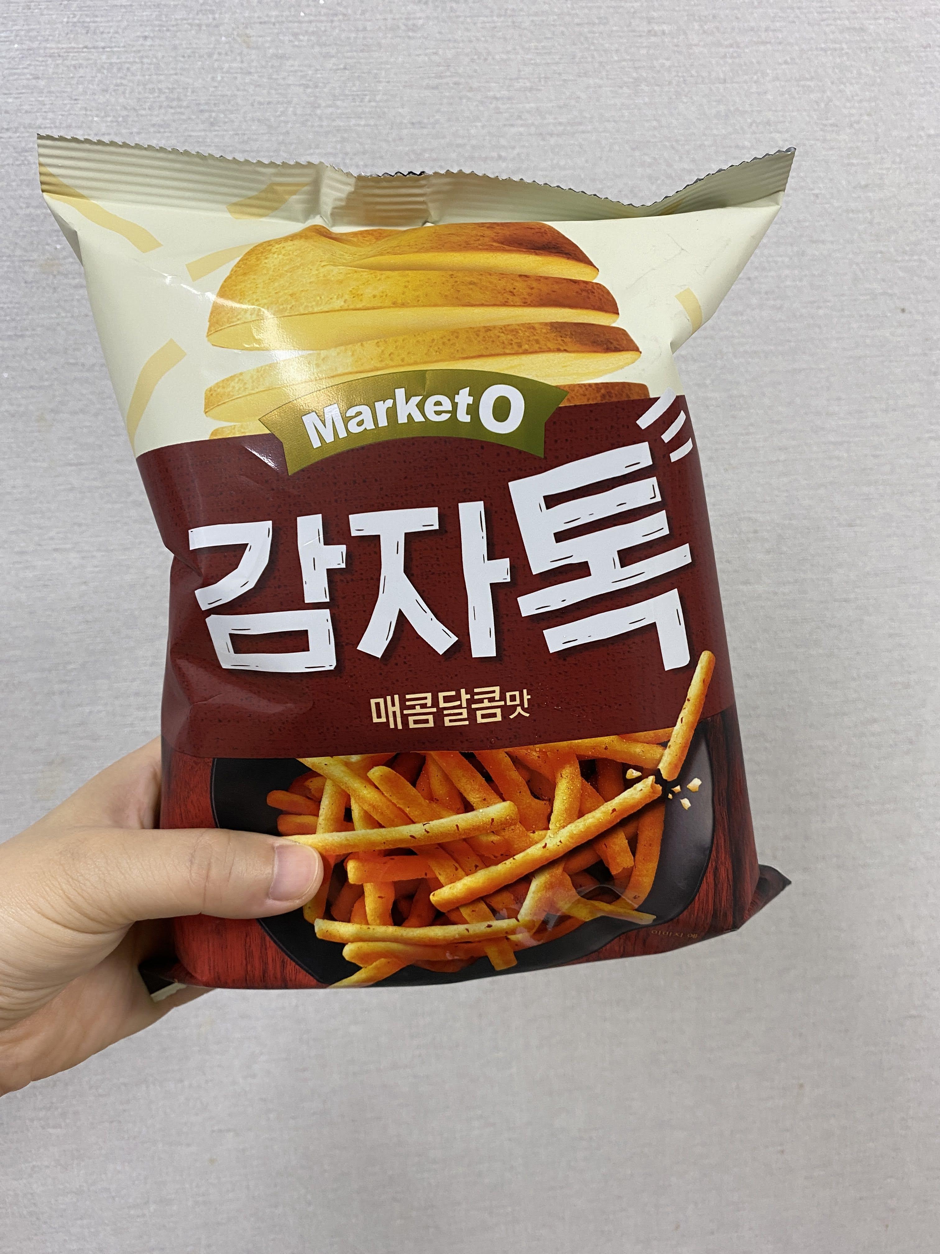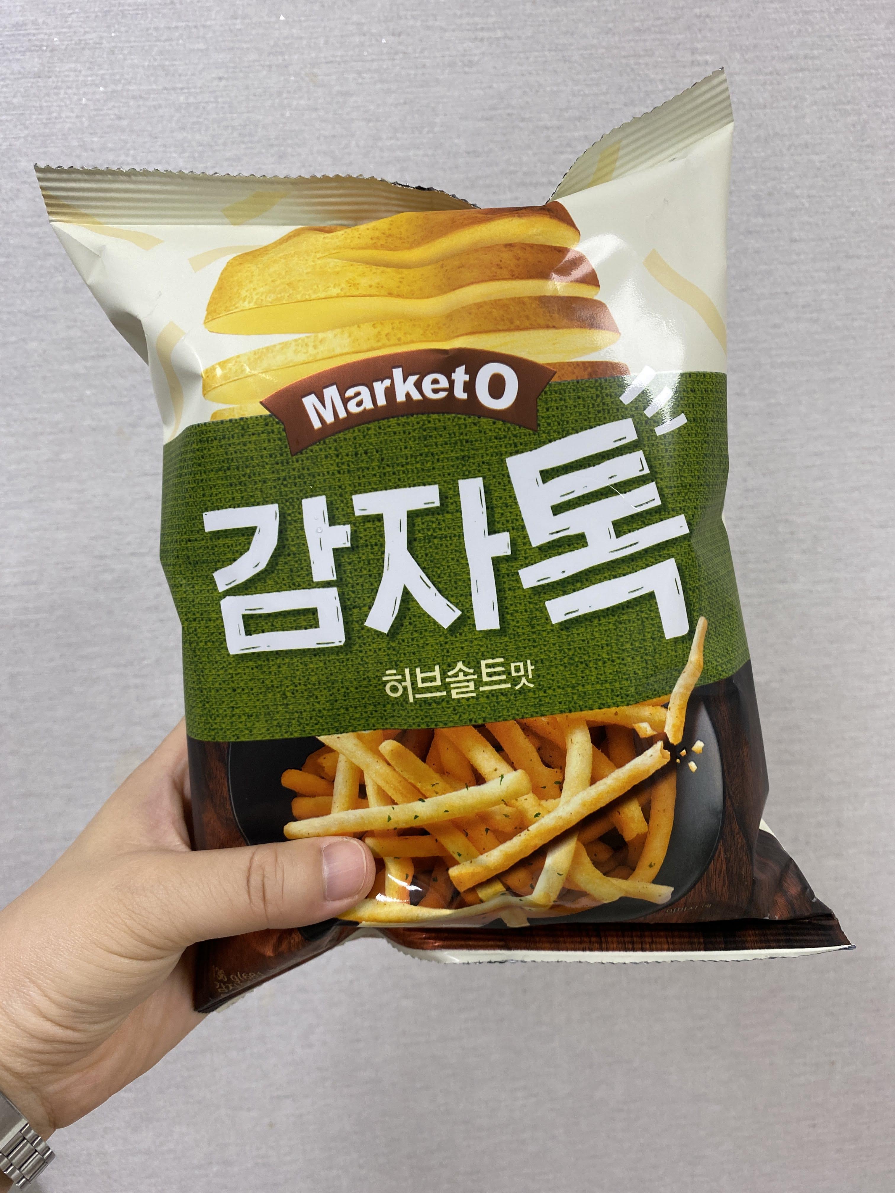 마켓오에서는 늘 상자에 든 과자만 만드는 줄 알았는데, 봉지 과자가 있었다. 편의점 갔다가 발견한 마켓오 감자톡 허브솔트 맛이다.