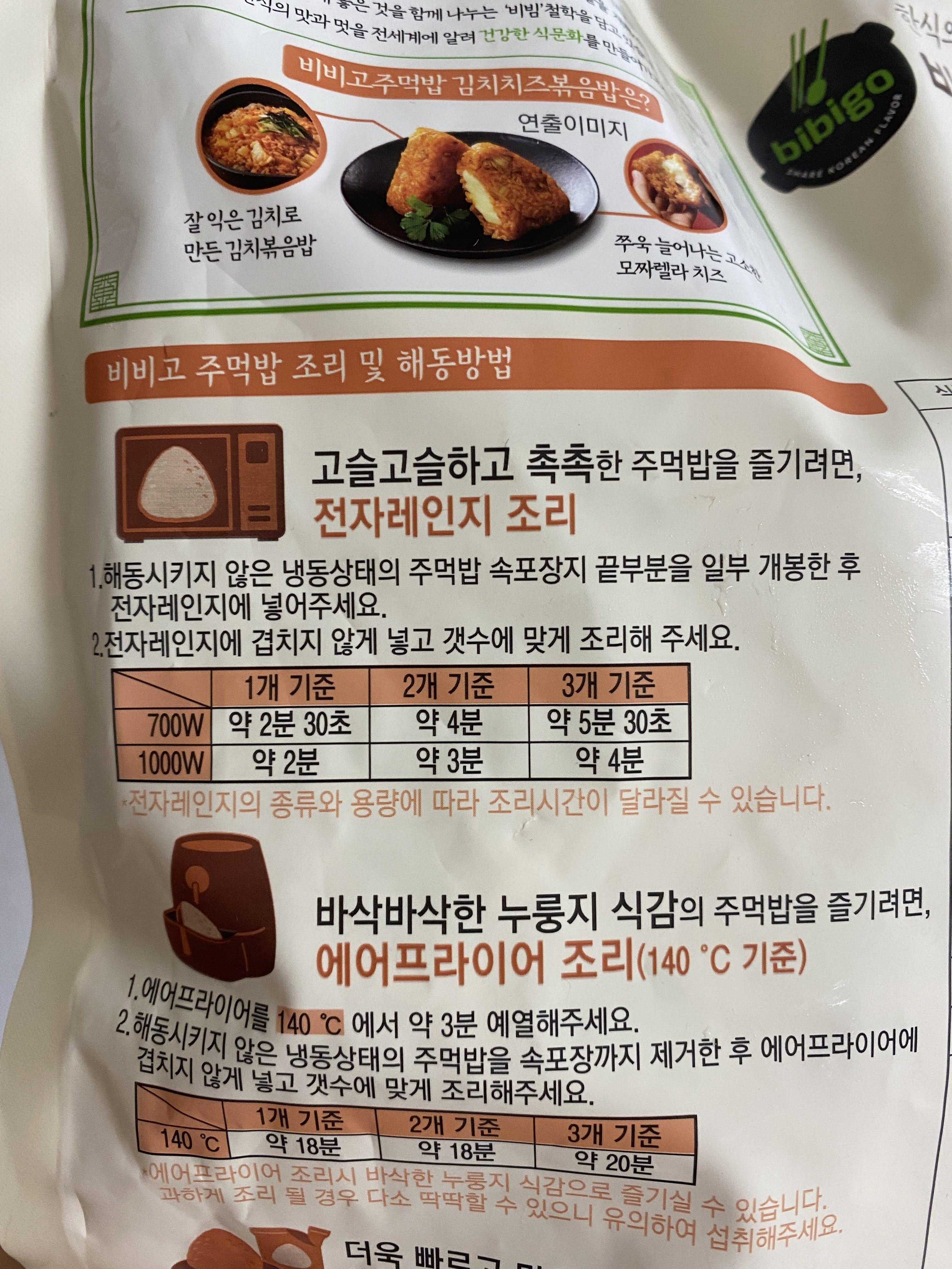 그냥 전자레인지에 덥히면 촉촉한 주먹밥을 즐길 수 있고, 에어프라이어에 넣으면 노릇한 주먹밥을 먹을 수 있단다. 후후, 하지만 내가 이걸 와플 메이커에 넣을 줄은 비비고 녀석들, 몰랐겠지?