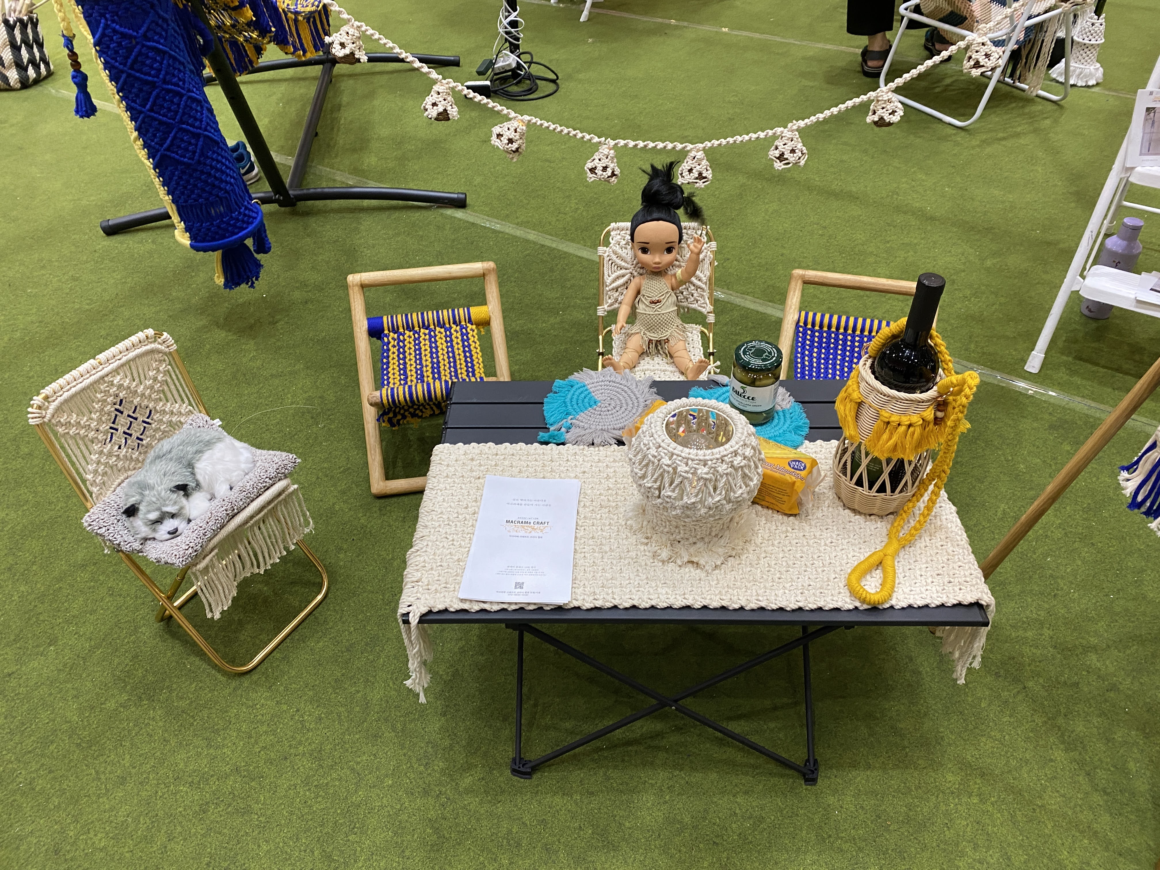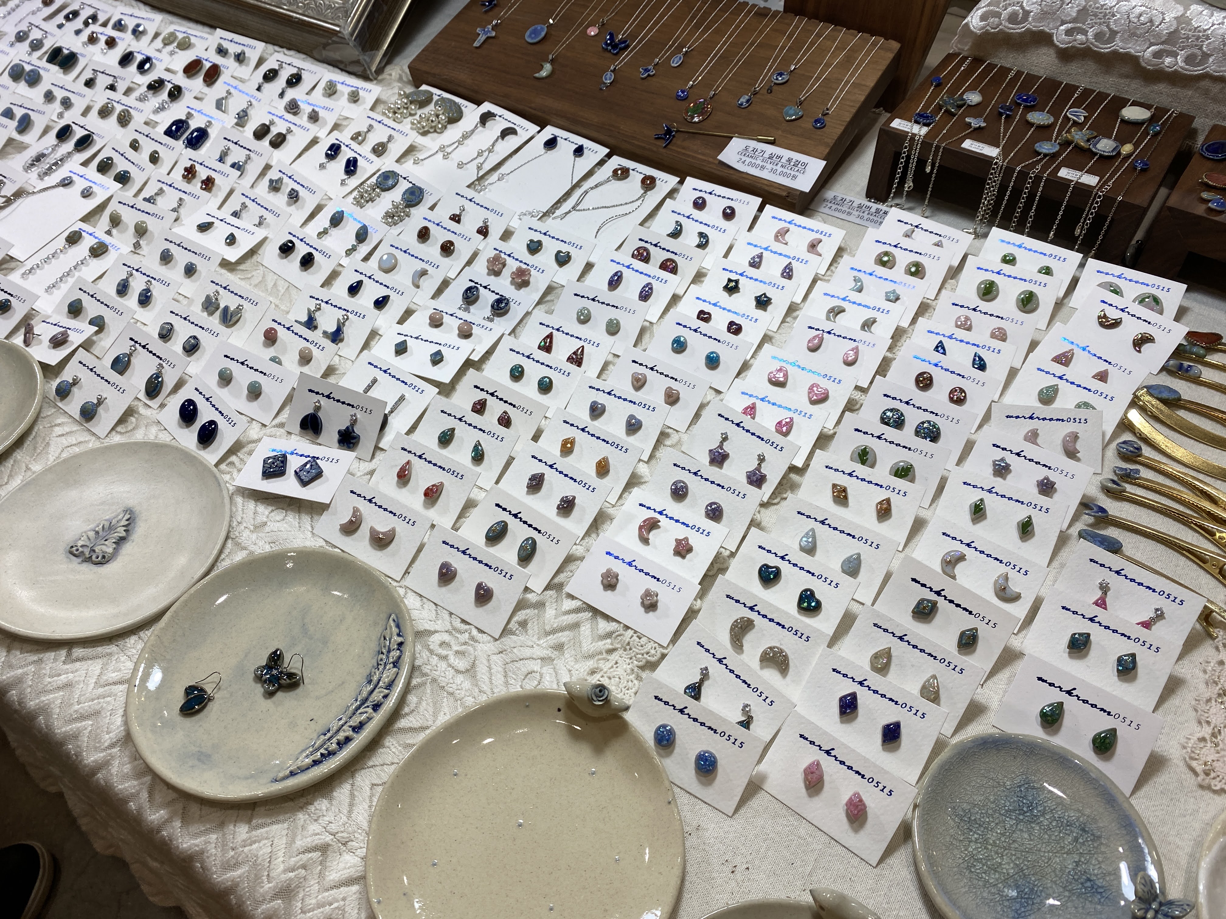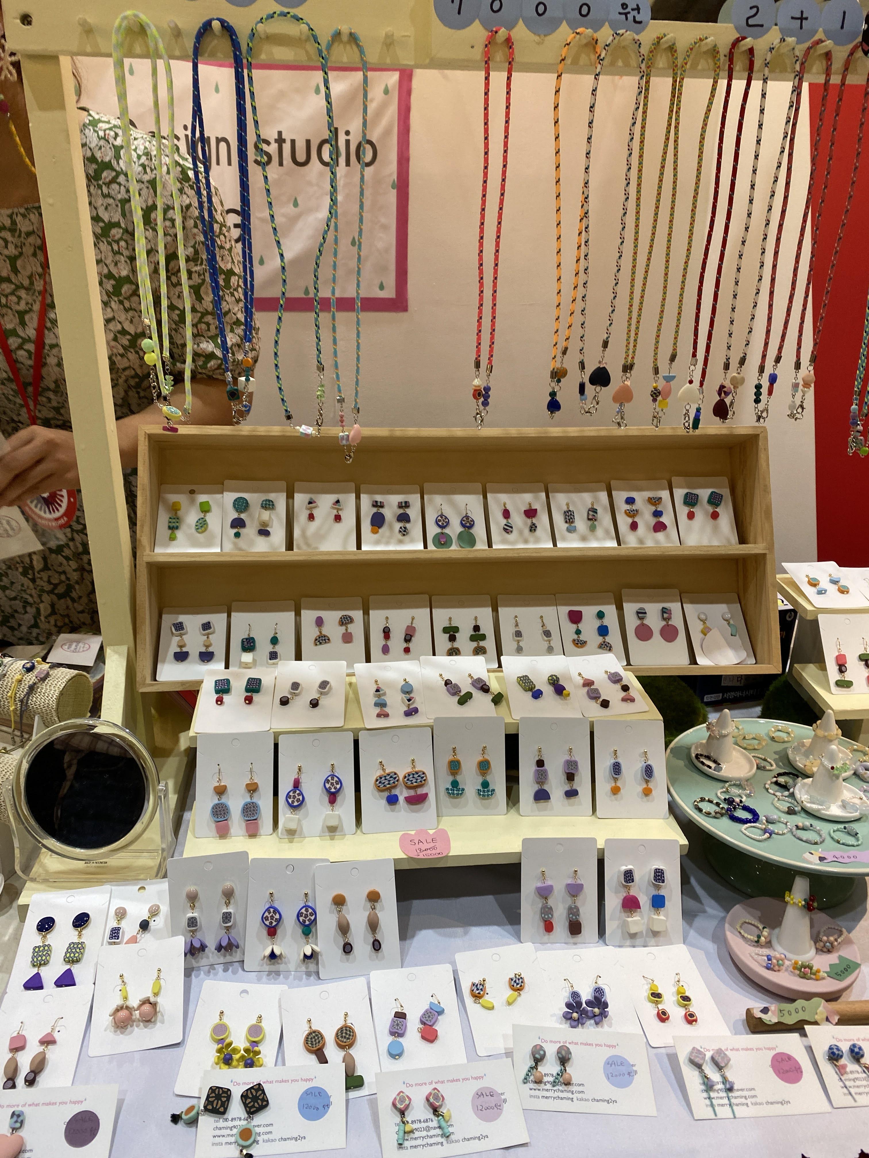 원래는 수제품 박람회니까 털실이나 양모를 좀 사고, 공방에서 나온 작품들을 구경할 수 있지 않을까 기대했는데 대부분 액세서리 부스였다. 반지, 귀걸이, 옷, 리넨, 천, 마크라메 등이 주였다. 여기서 나의 취미는 마이너였다. 그래도 구경하는 거 너무 재밌었다.