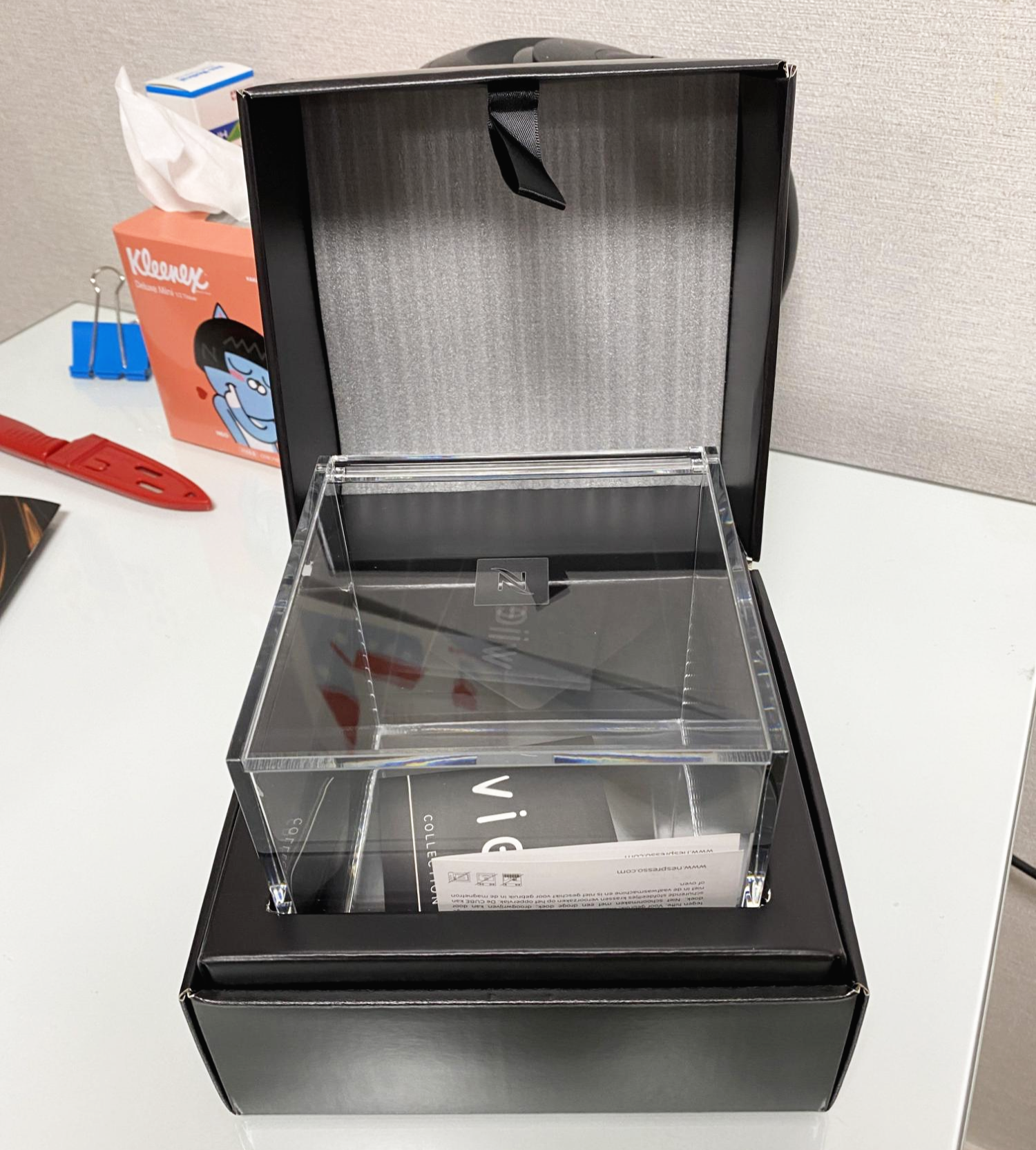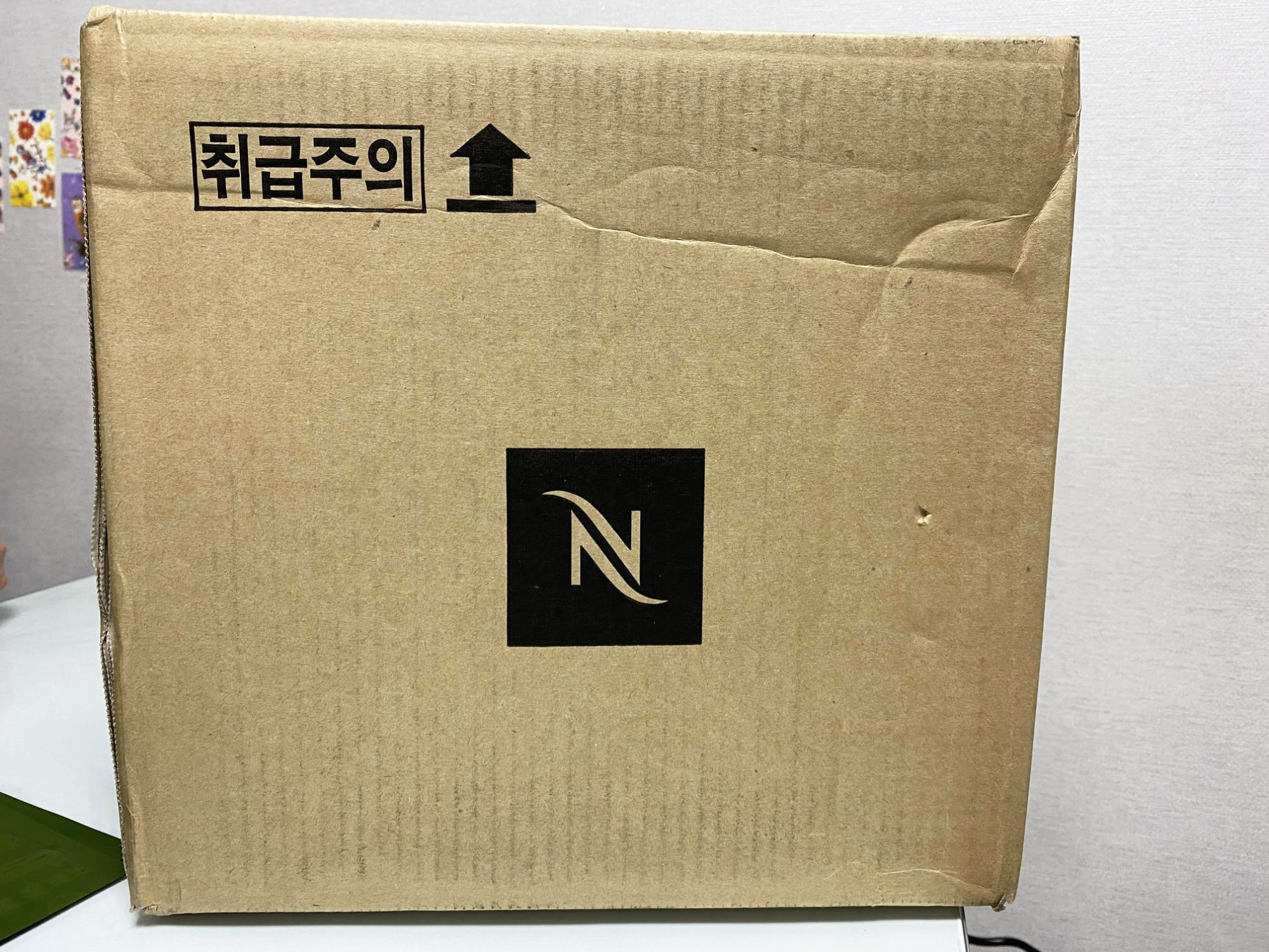 상자에 담겨서 도착했다. 네스프레소는 다 쓴 캡슐도 수거해 간다고 들어서 수거용 봉투도 주문했다.