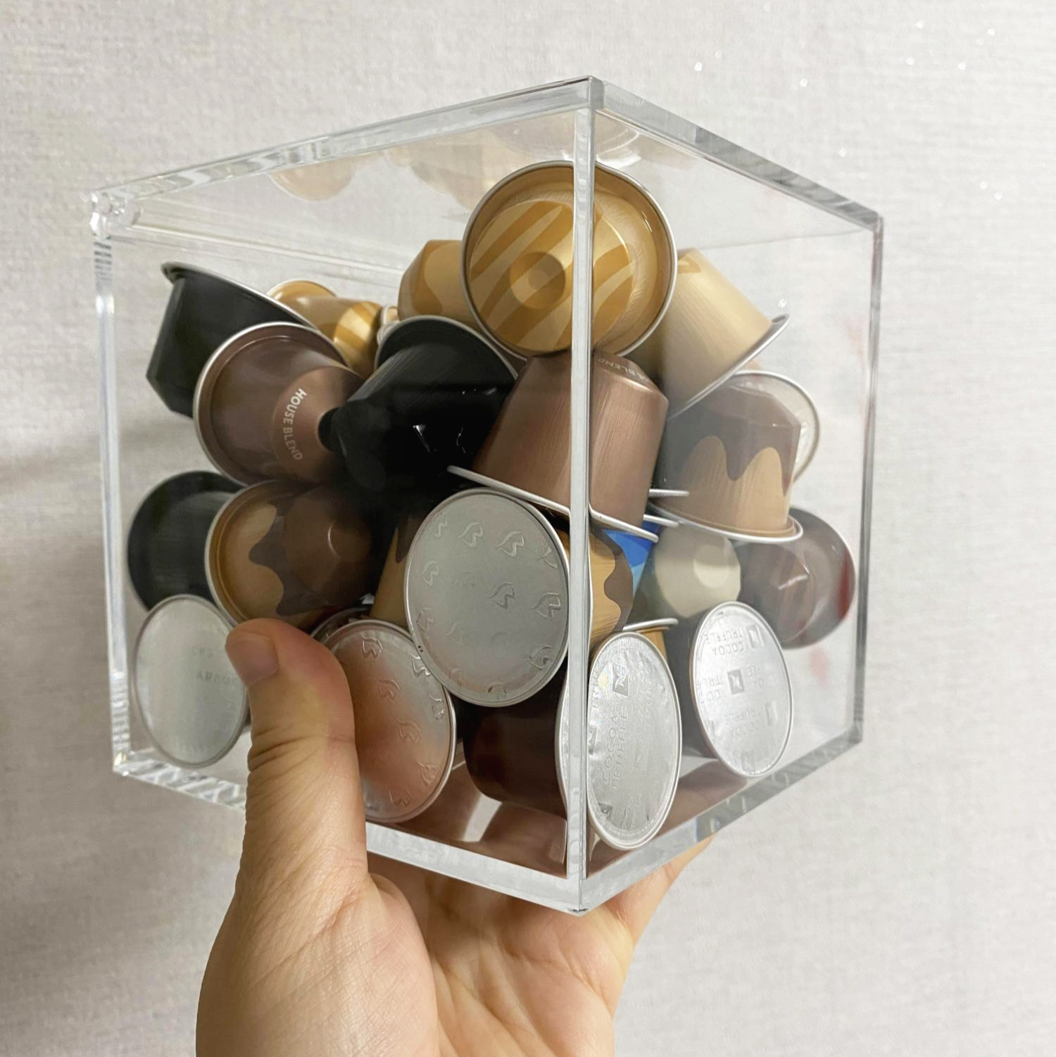 뷰케이스에 지금 가지고 있는 캡슐들을 쏟아부었다. 대부분 갈색이라 화려하지 않은데, 알록달록한 캡슐커피들을 채우면 더 예쁘다!