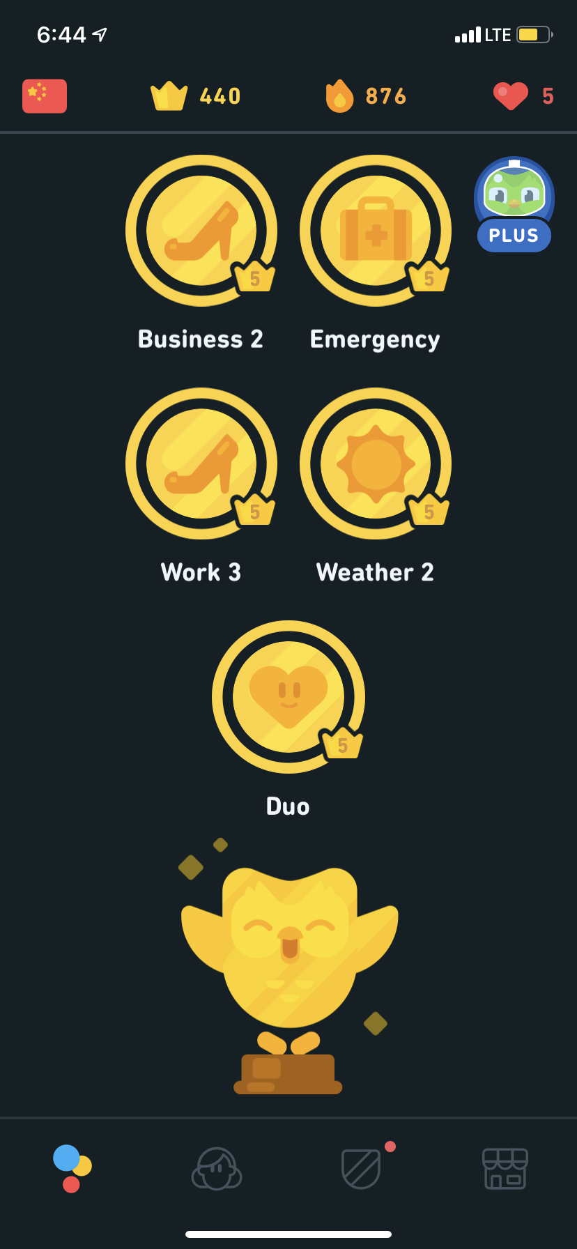 듀오링고로 중국어를 배우고 있는데 드디어 모든 과정을 레벨5까지 꽉꽉 채웠다.