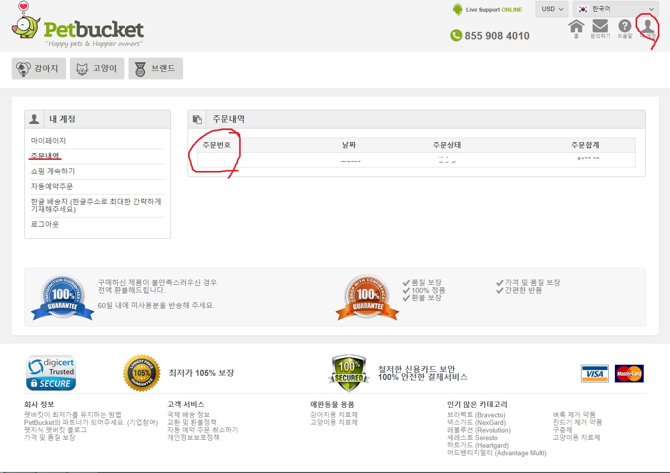 안 오길래 애가 타서 몇 번이나 배송 조회를 했다. 배송 조회하는 법이 좀 복잡한데 할 수 있기는 하다. 먼저 내 계정 들어가서 주문번호를 복사한다.