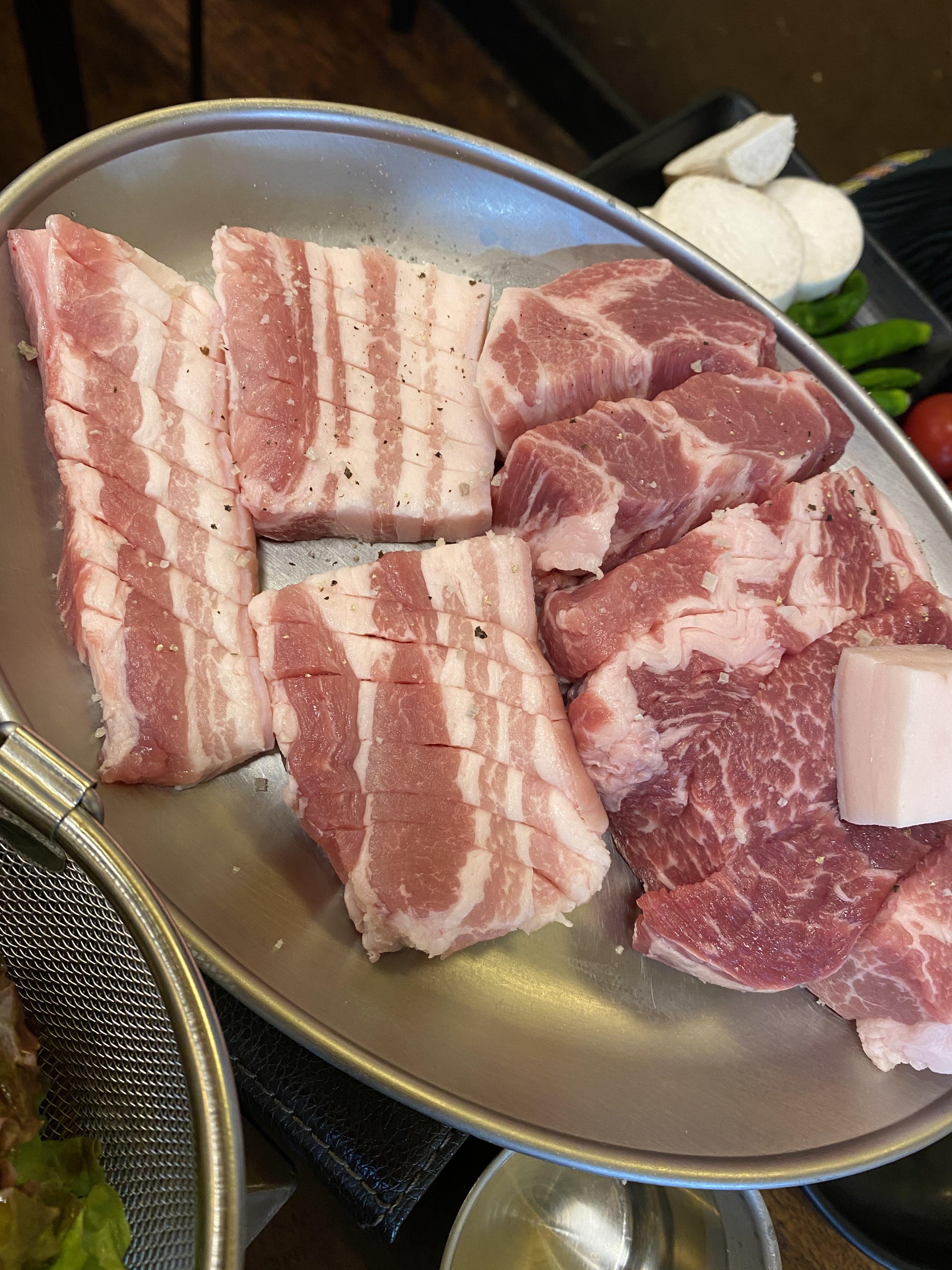 고기를 먹으러 갔다. 부모님이 오셨는데 고기 먹자고 하셔서 부랴부랴 검색해서 갔다. 여기로 이사 오고 난 뒤에는 한 번도 밖에 나가서 고기를 사 먹거나 집에서 구워 먹은 적이 없다. 그래서 어디를 가야 좋을지 난감했는데 카카오 맵에서 그냥 고깃집 검색해서 평이 좋은 곳으로 갔다.