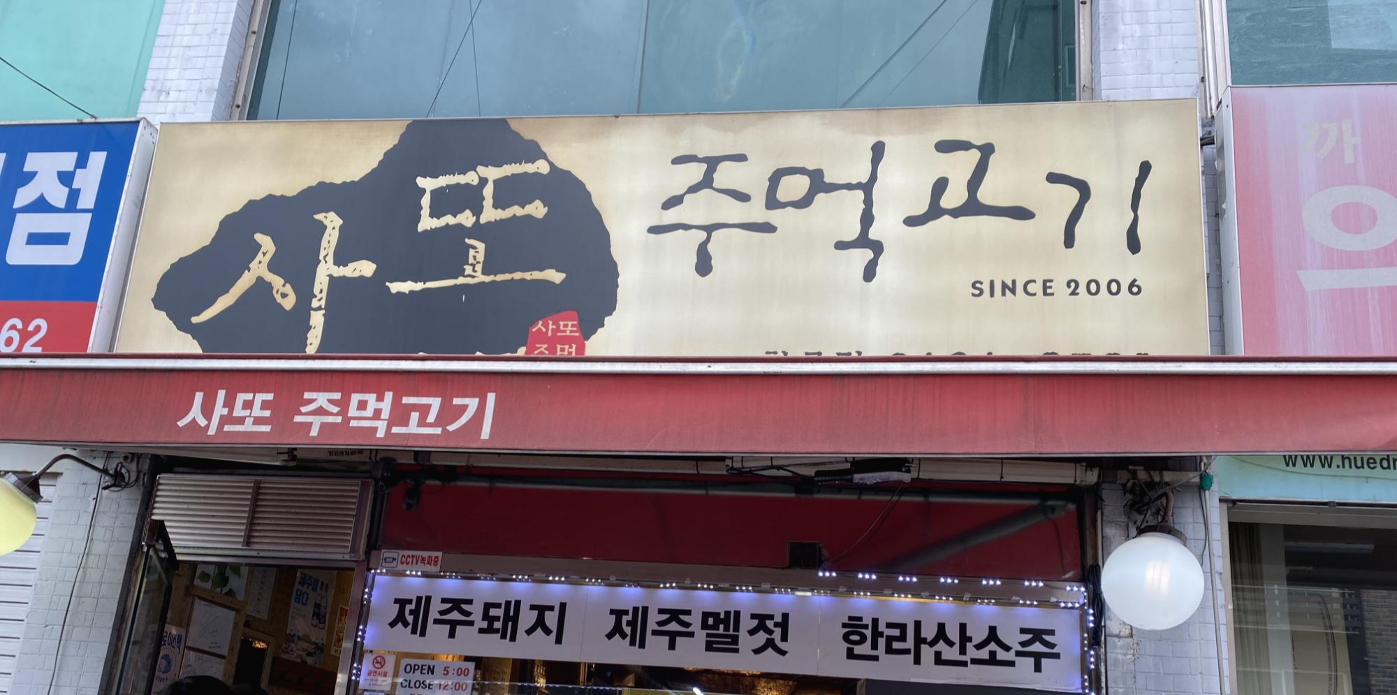 이름은 사또 주먹고기. 주먹 고기가 뭔지 모르지만 그냥 갔다. 겉모습은 제법 허름하고 자리가 좀 불편해 보여서 부모님 모시고 가기엔 별로인가 싶었는데, 맛있어서 부모님이 대만족 하셨다.
