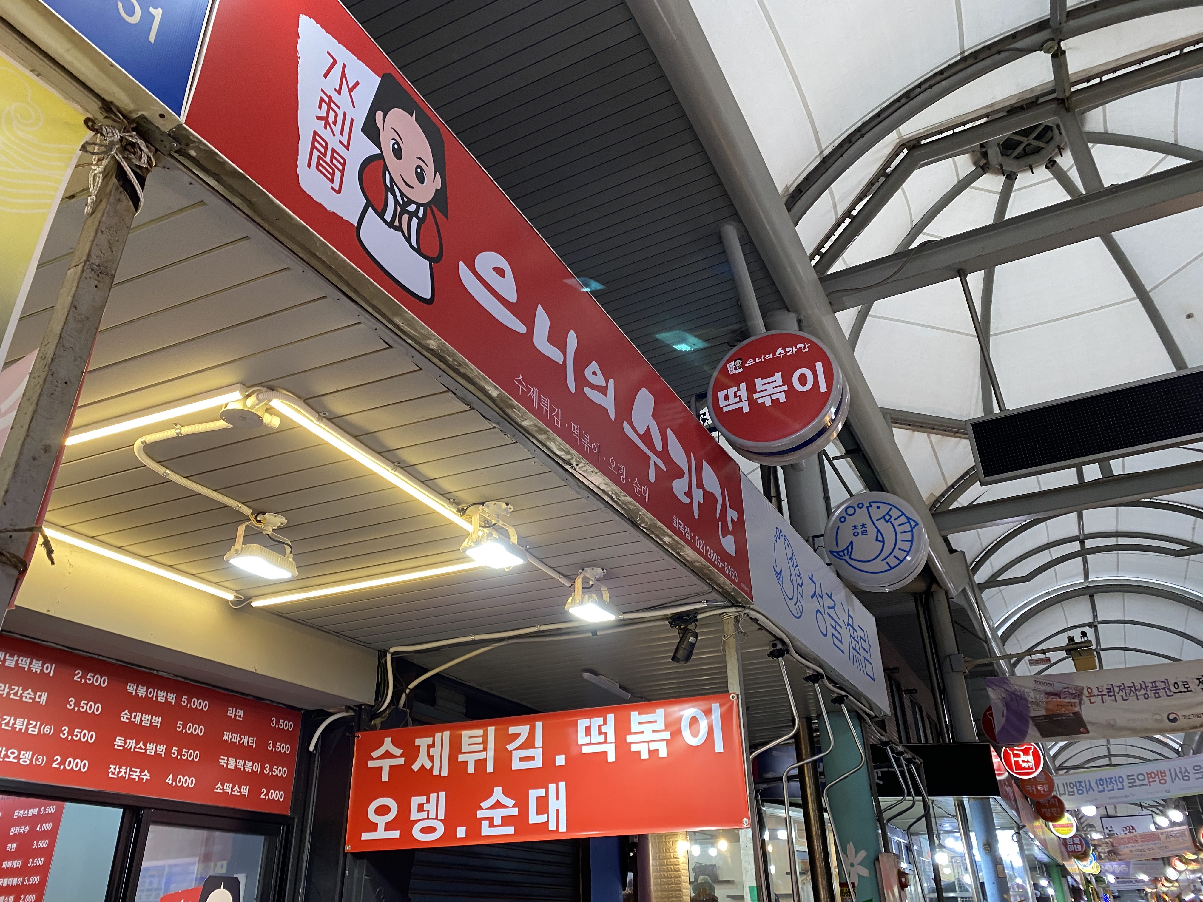 골목시장 안에서 빨간 간판을 찾거나 튀김을 벌려 두고 파는 분식집을 찾으면 된다. 내가 갔을 때는 포장 손님이 꽤 많았다.