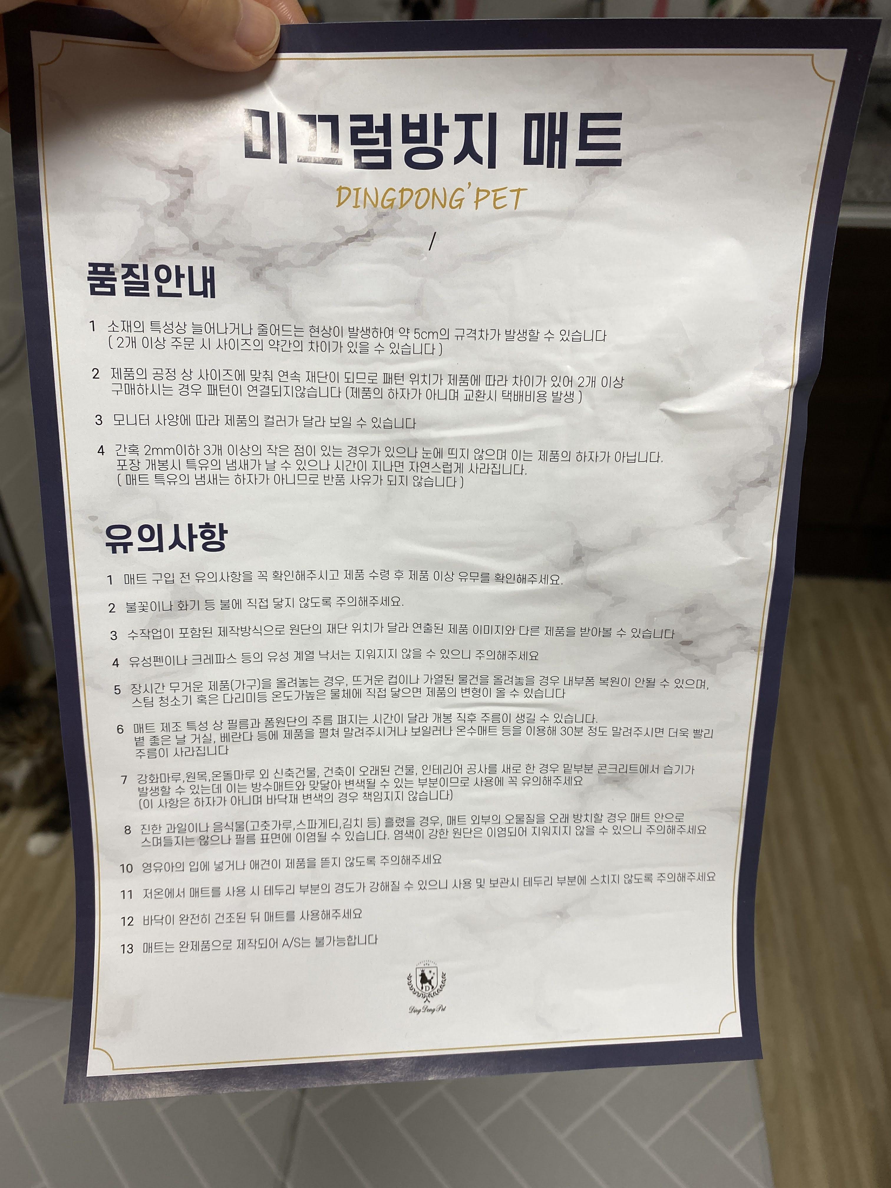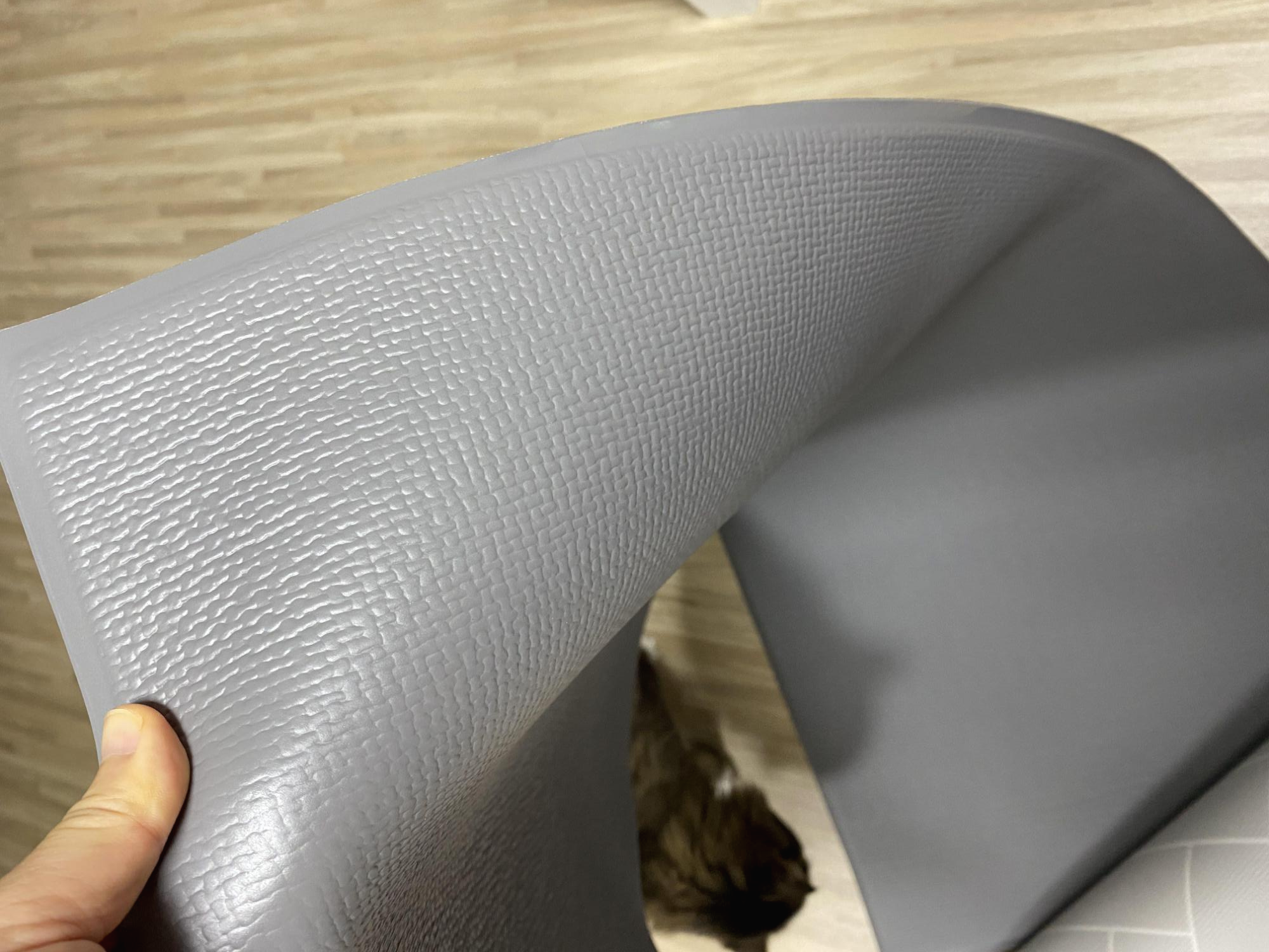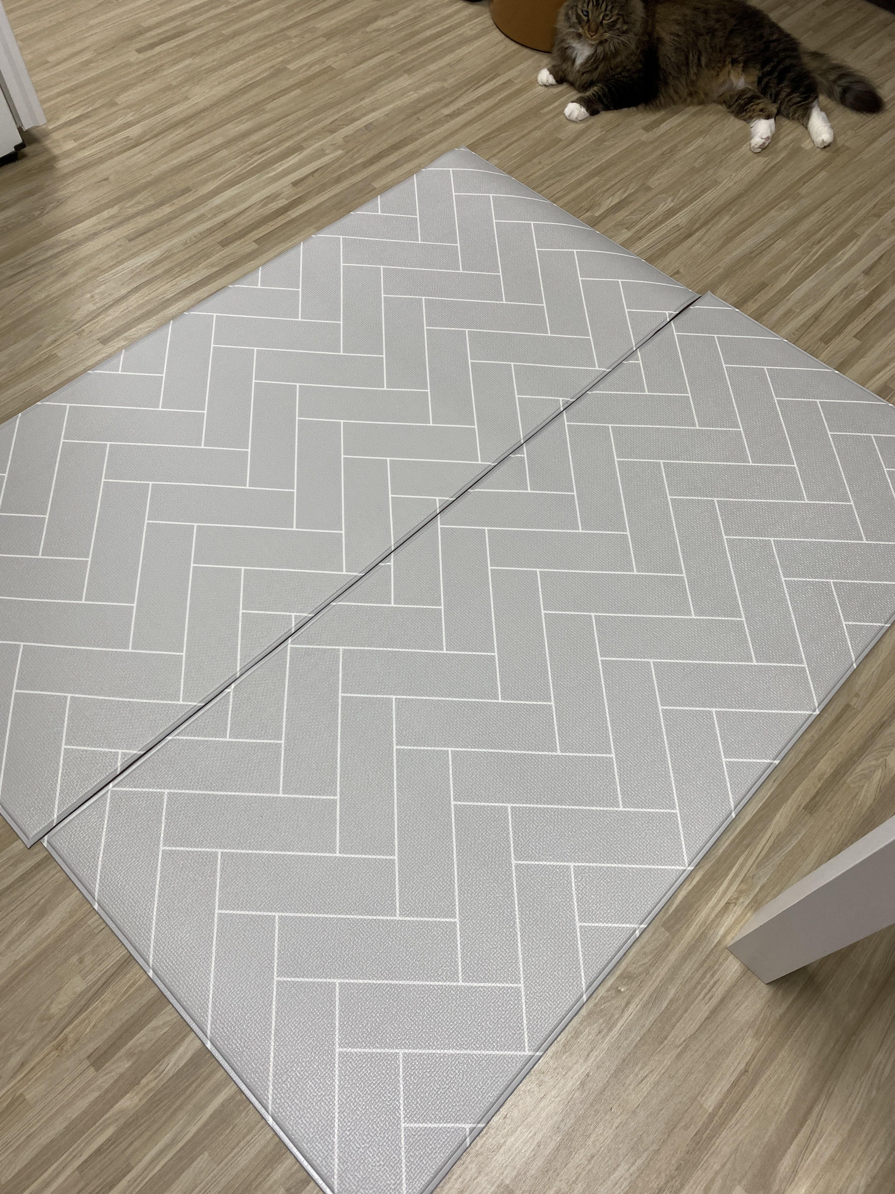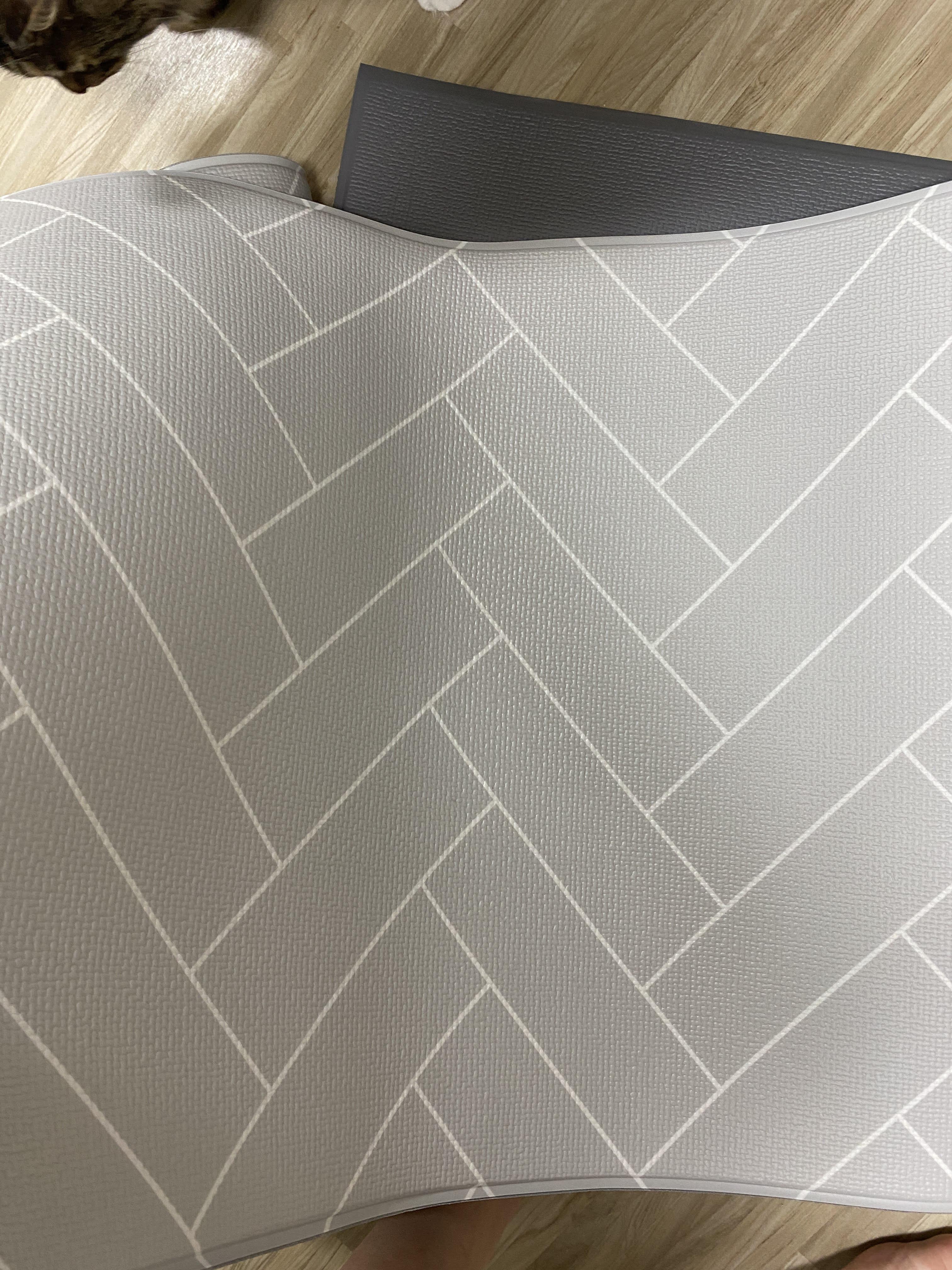 캣타워 아래 깔아 주고, 놀 때 좀 푹신하고 덜 미끄러지며 놀라고 미끄럼 방지 매트를 구매했다. 이건 멍멍이를 키우는 친구가 쓰고 있길래 샀다. 무늬도 깔끔하고 이미 쓰는 친구가 잘 쓴다고 해서 별 고민 없이 샀다.