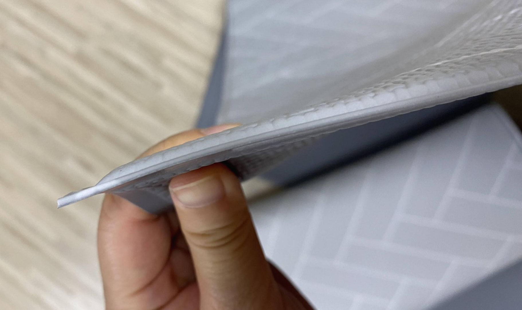 두께는 이 정도인데, 너무 푹 꺼지지 않고 그렇다고 딱딱하지도 않아서 충격 흡수는 괜찮을 거 같다.