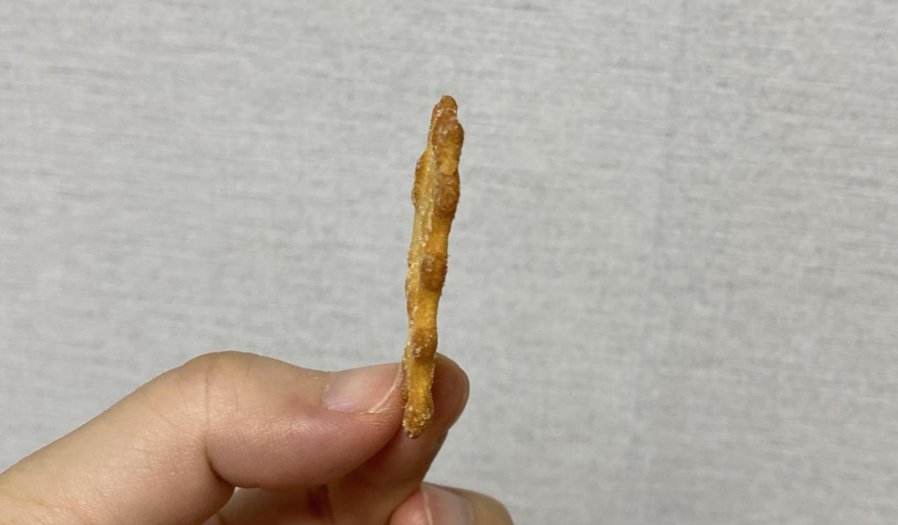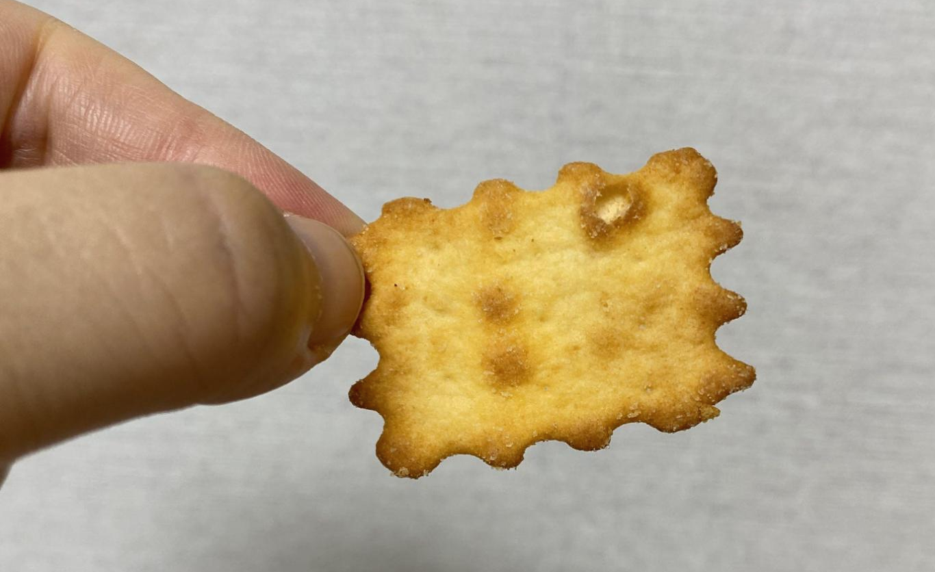 짭짤하고 고소한 치즈 특유의 향이 폴폴 난다. 겉에는 치즈 가루로 추정되는 것이 묻어 있다.