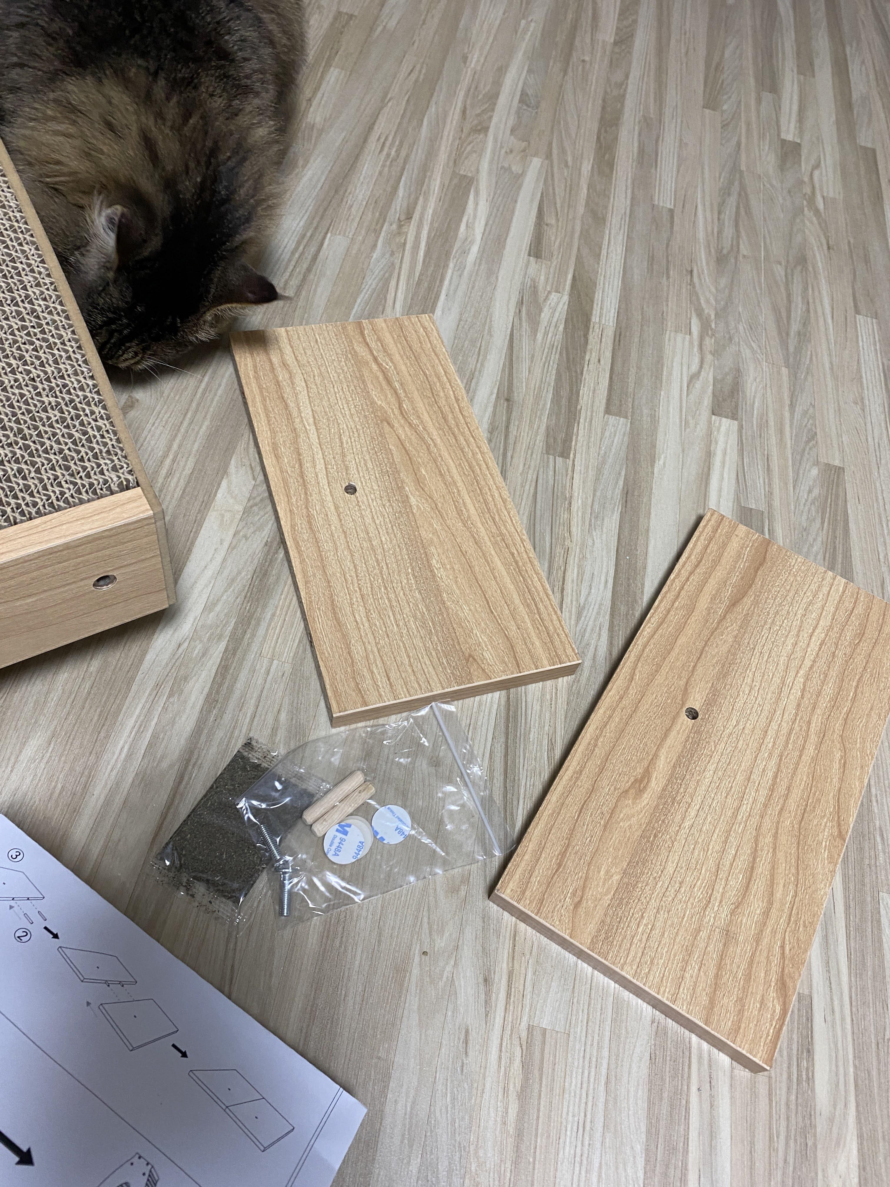 원래 평판형 스크래쳐가 있던 곳에 수직형 스크래쳐를 뒀다. 아직까지 고양이 양반의 사랑을 받지 못하고 있다. 아니 막상 조립할 때는 엄청 관심 보이더니!
