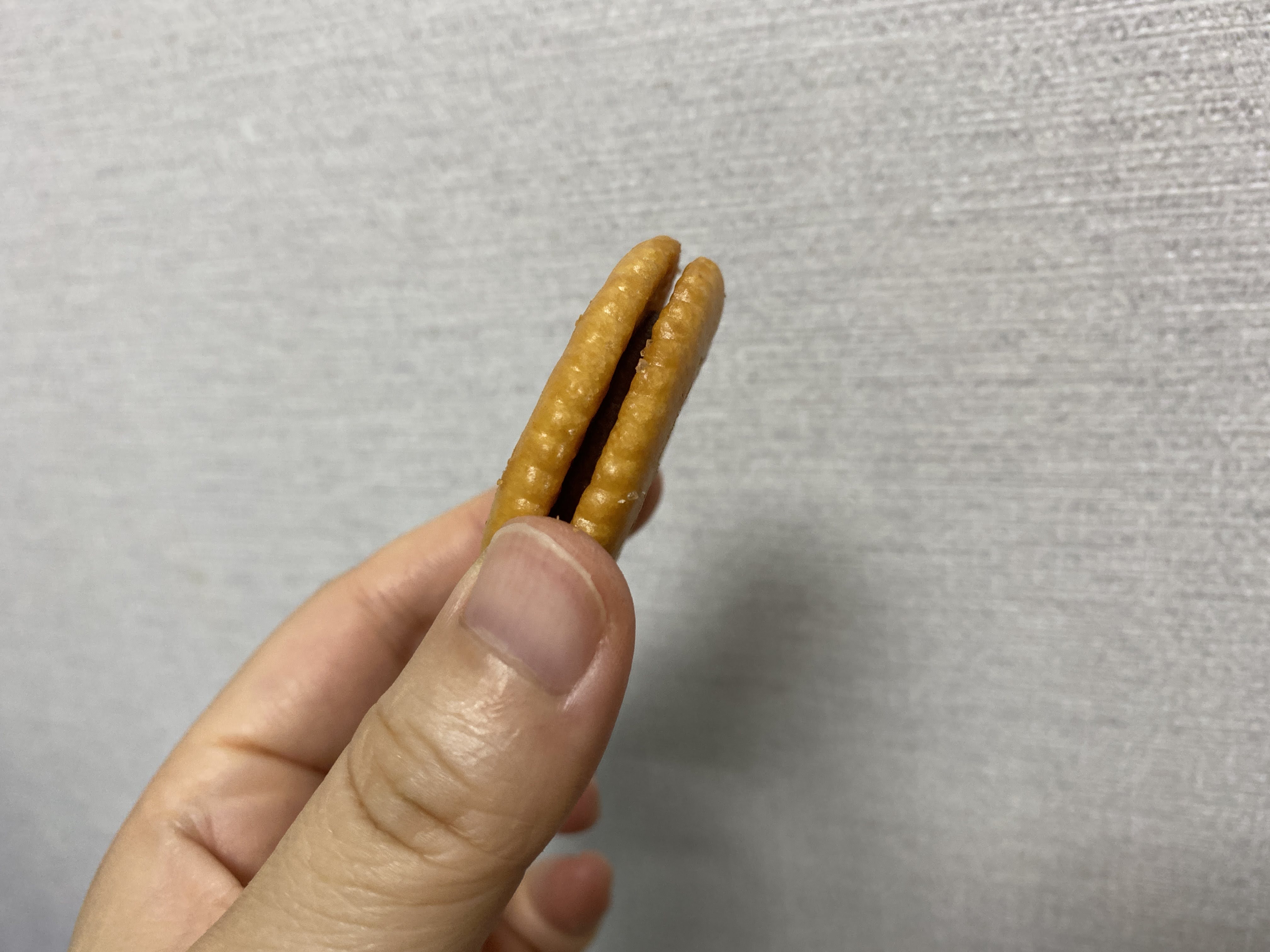 맛은 크래커의 짭짤함과 초코의 달콤함이 잘 어울린다! 궁합이 매우 좋음! 단짠단짠한데 초코의 단맛과 크래커의 짠맛은 서로 상승효과를 가져온다. 한 봉지에 4개밖에 없는 게 아쉬운 맛이다.