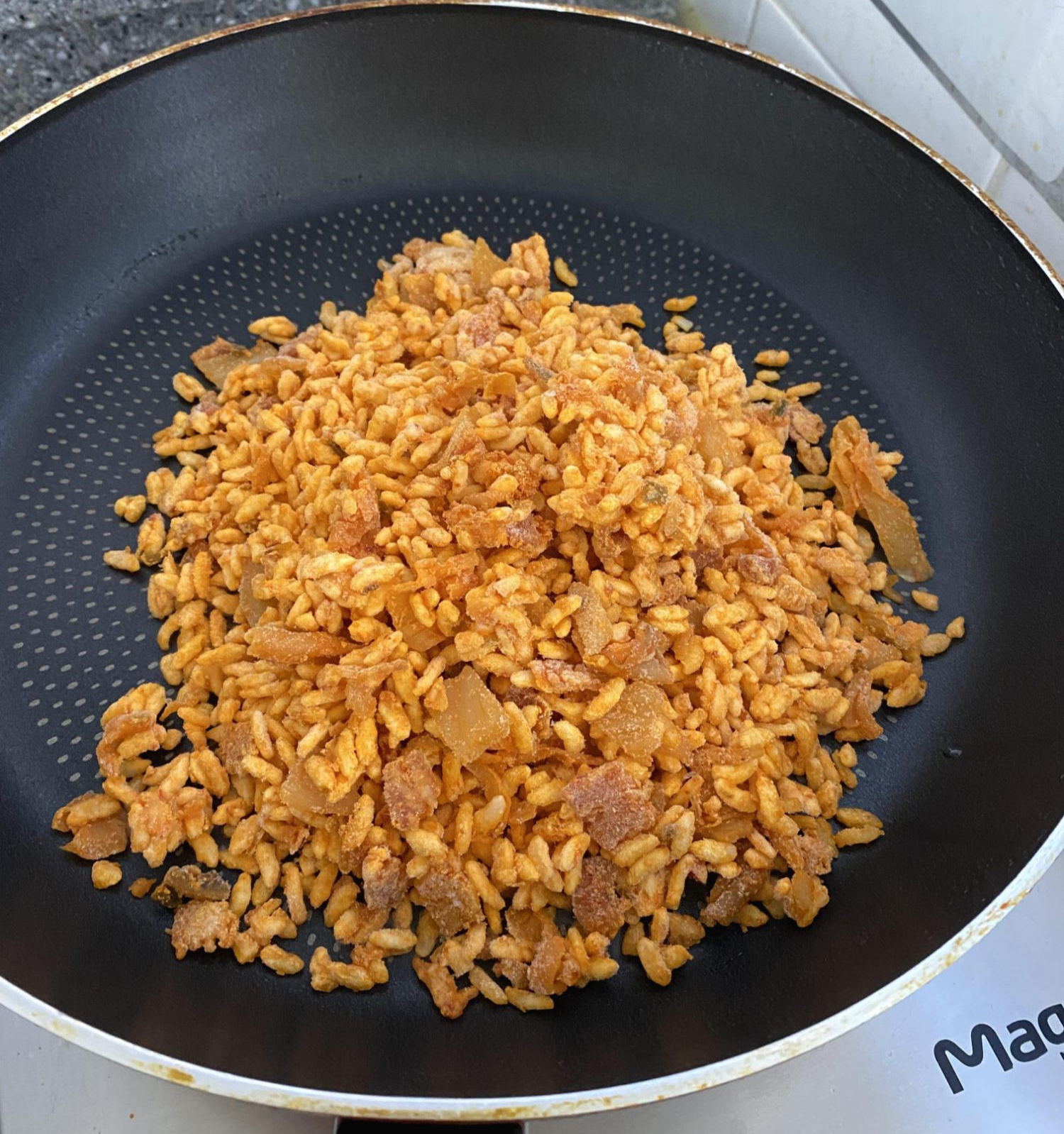 나는 후라이팬에프라이팬에 데워서 먹기로 했다. 부지런한 편은 아니지만, 이건 그냥 프라이팬에 볶아 먹으면 더 맛있을 거 같았다. 프라이팬 위에 쏟았더니 알알이 잘 살아있는 밥알과 베이컨 조각들이 보인다. 기대했던 것보다는 베이컨 비율이 높은 듯해서 마음에 들었다. 일단 그냥 훅 후라이팬에 붓기만 해도 김치볶음밥의 그 특유의 향이 올라온다. 맛있는 냄새가 솔솔.