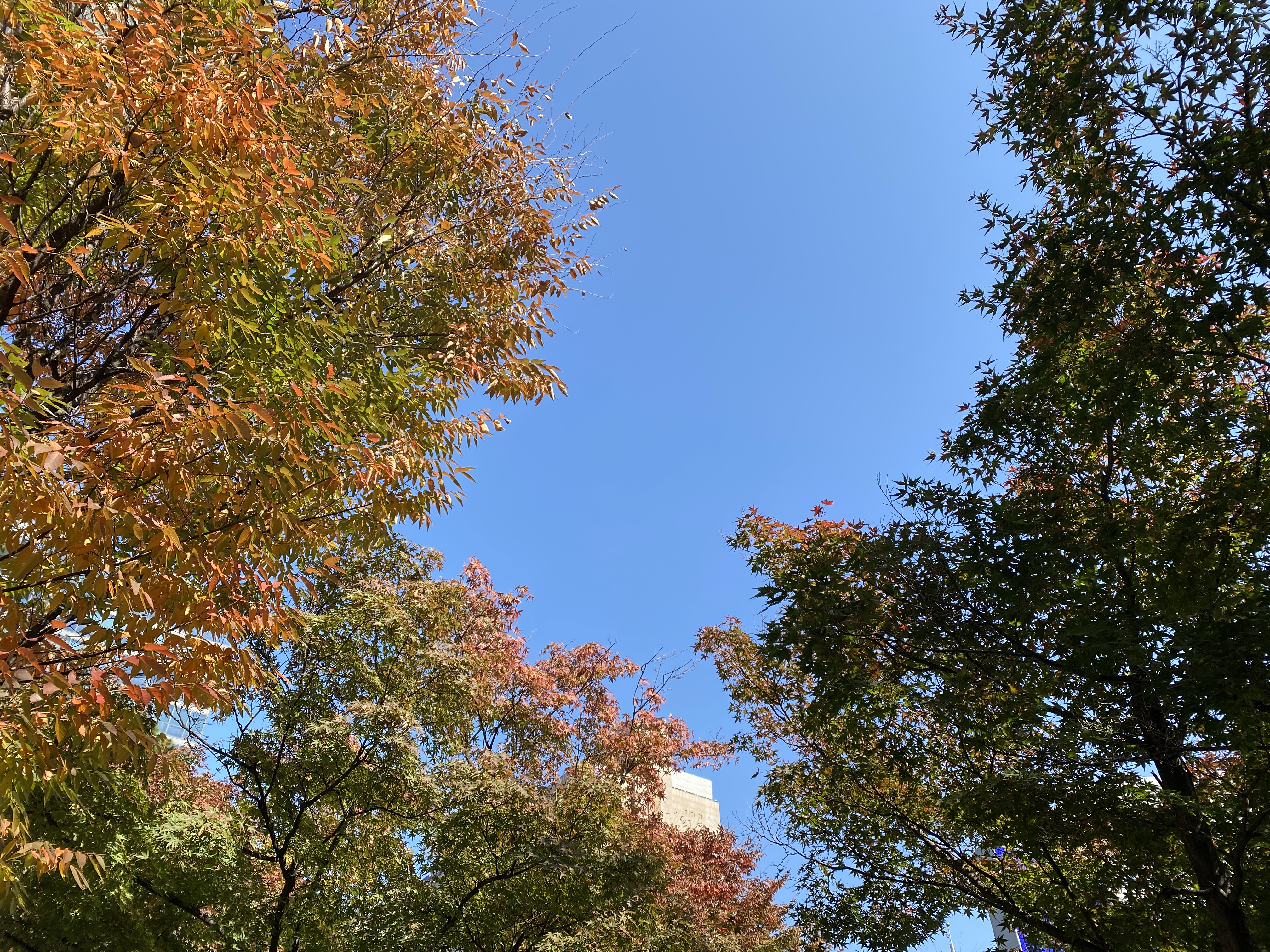 잔뜩 쌓인 낙엽도 보고 제법 차가워진 바람도 느꼈다. 하늘 보니까 단풍도 보이고 물감 풀어 놓은 듯한 색도 겨우 눈에