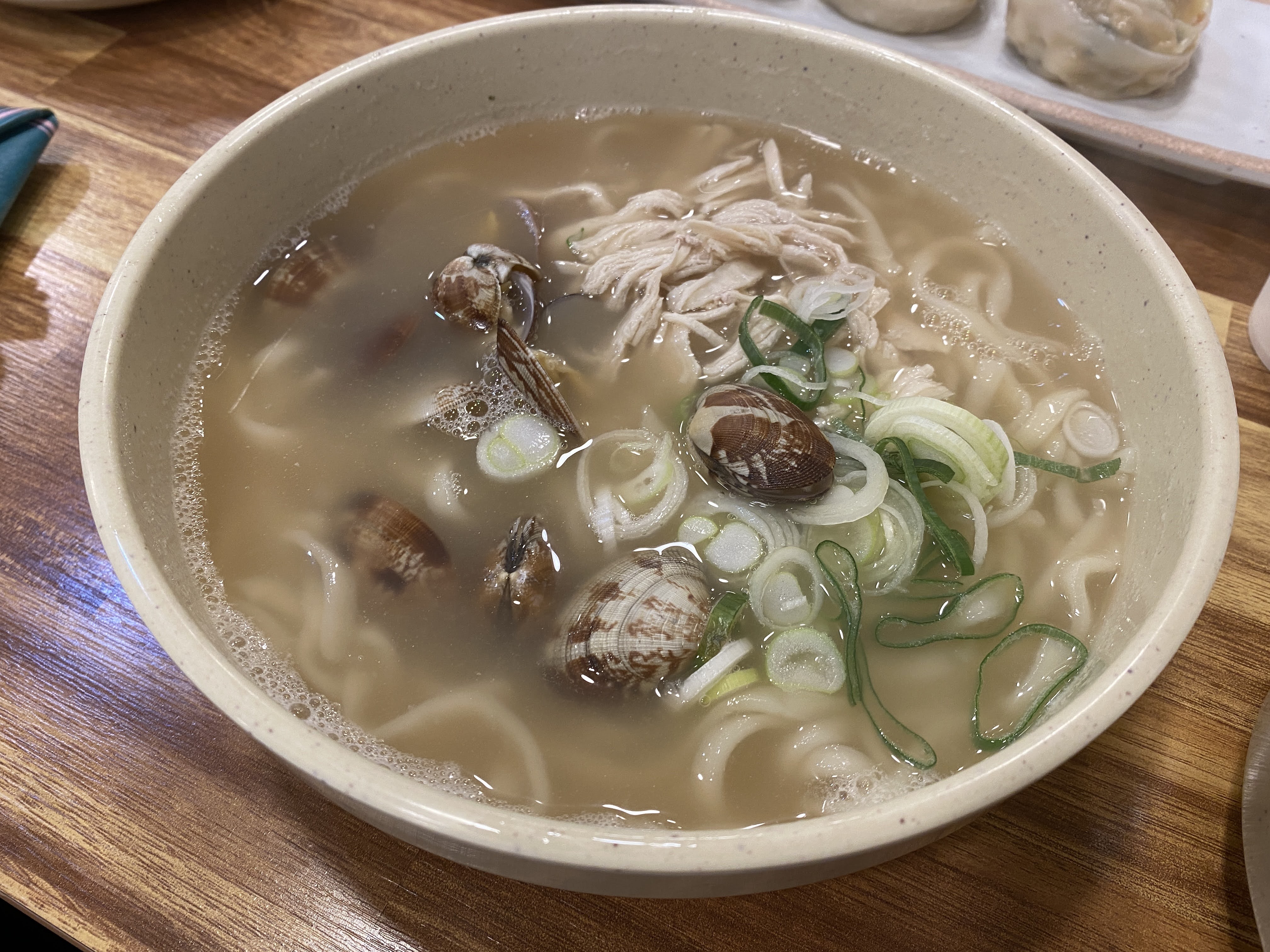 가격에 비해 양이 조금 적은 듯 보였는데 바지락이랑 닭고기가 들어가니까 좀 비싼가 보다 하고 이해했다. 육수는 메뉴판에서 자랑하는 대로 시원하고 깔끔한 편이었다. 면은 일반적인 칼국수 면이었다. 먹다 보니 양이 적은 편은 아니었다. 맛도 좋고 좋았음!