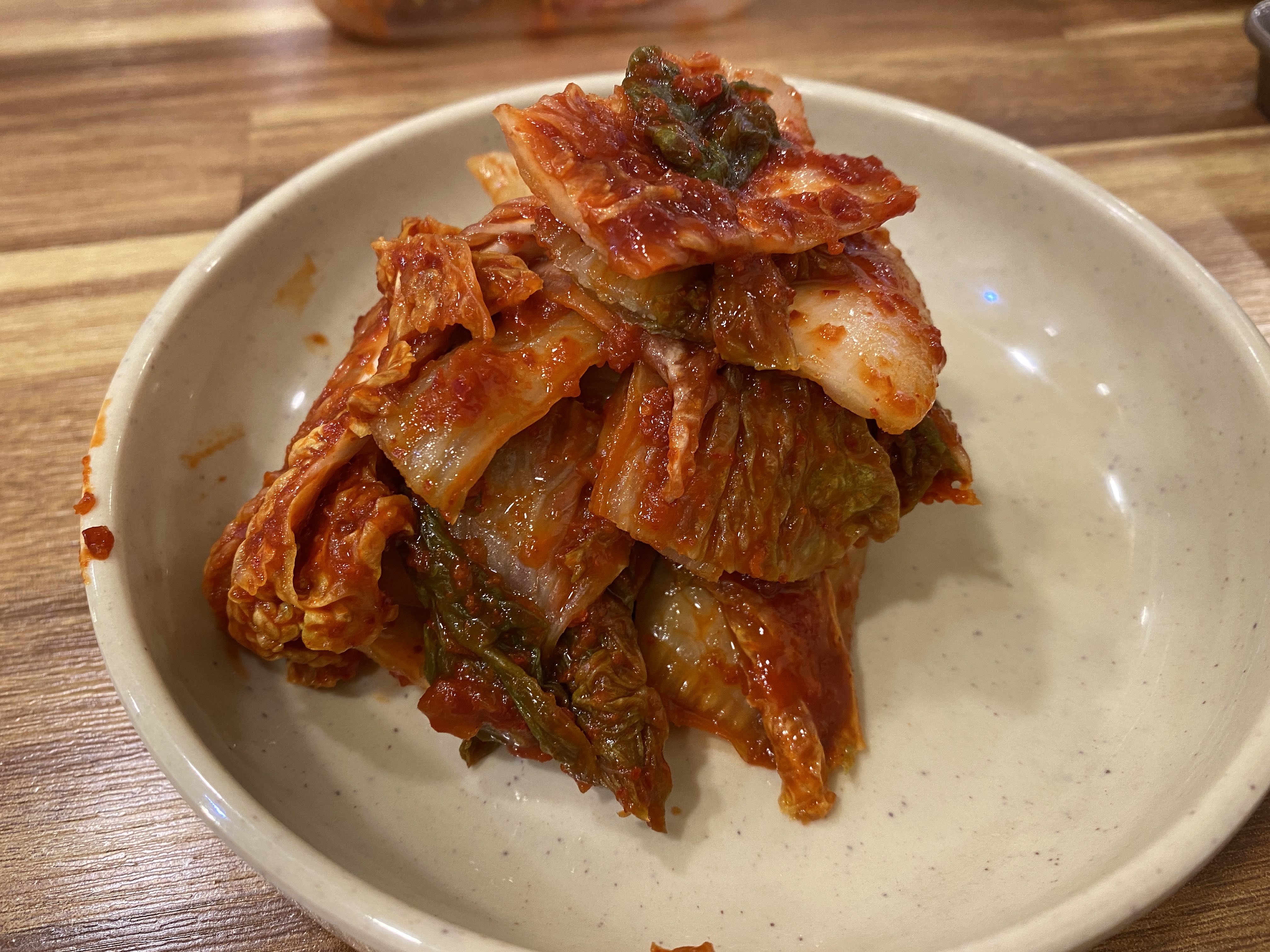 김치는 식탁 위에 있지 않고, 통에 담아서 가져다주신다. 그걸 덜어서 먹으면 된다. 맛있음.