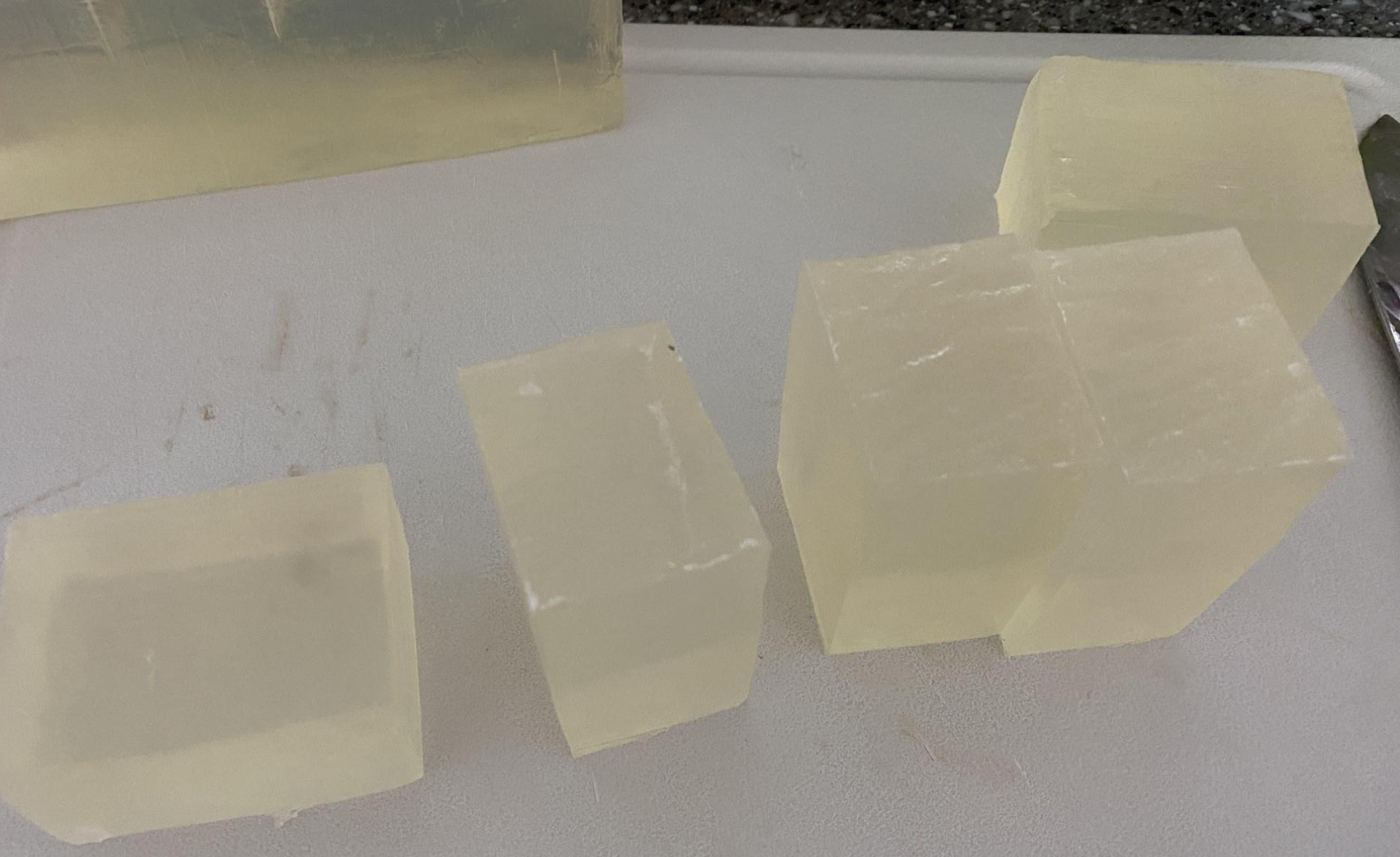 먼저 비누베이스를 깍둑썰기 한다. 비누 자르는 느낌이 좋아서 재밌었다. 깍둑깍둑깍둑깍둑. 잘게 자를수록 잘 녹는다.