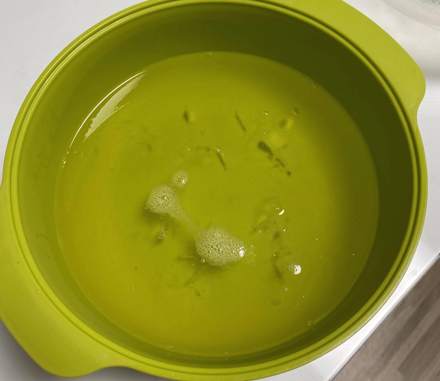 내가 가진 전자레인지용 용기가 작아서 비누베이스를 500그램씩 나눠서 두 번 했다. 비누베이스 500그램당 커피머신으로 추출한 에스프레소 샷 3개를 넣었다. 커피머신이 없으면 카누나 맥심 커피(믹스 말고!)를 녹여서 써도 좋다.
