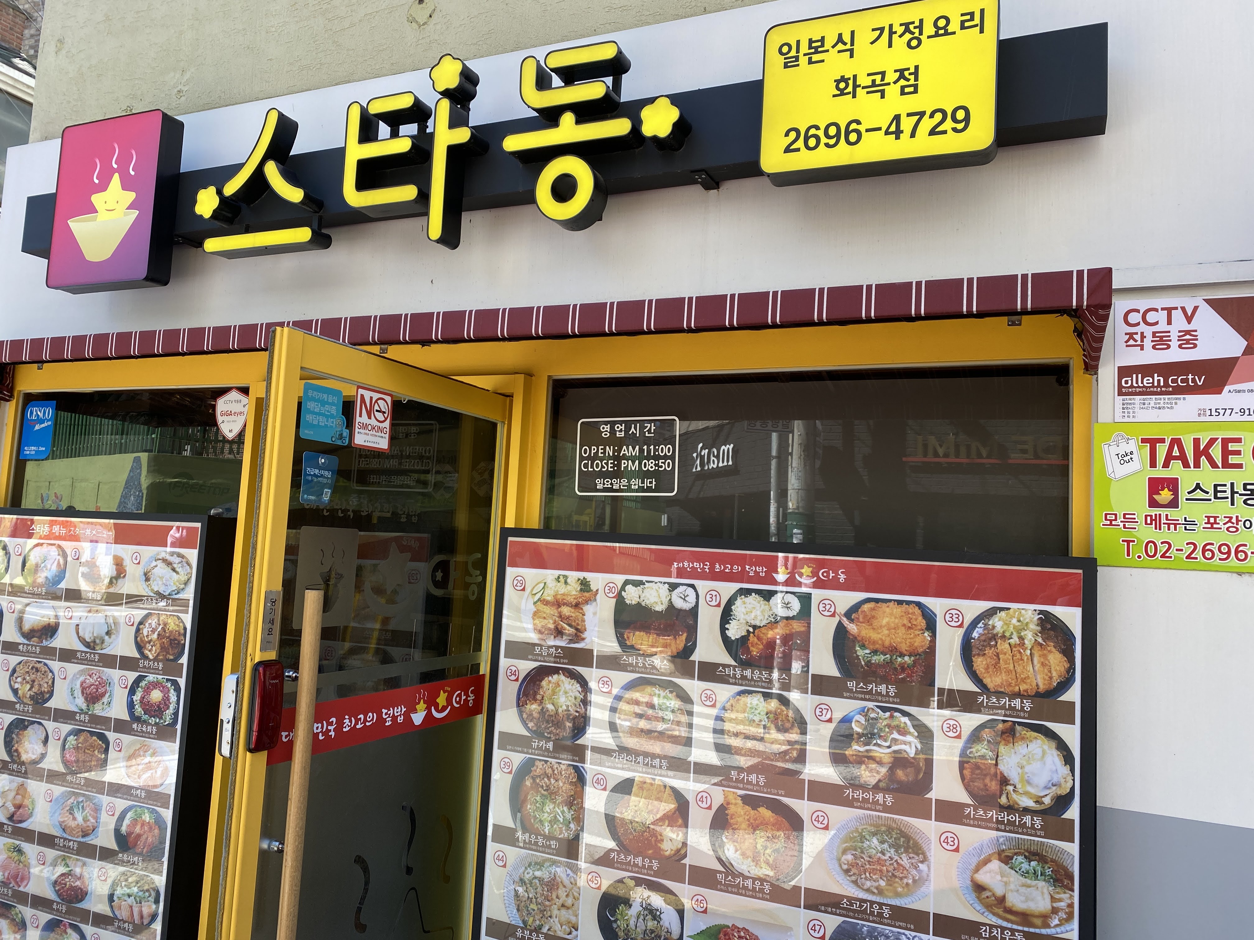 덮밥 먹으러 갔다! 오며 가며 자주 본 덮밥집, 스타동. 겉에서 봤을 때는 가게가 그다지 커 보이지 않았는데, 조리석과 마주보는 자리 외에도 테이블도 있고, 안쪽으로는 방처럼 된 공간이 있어서 두 테이블 정도 더 있었다.
