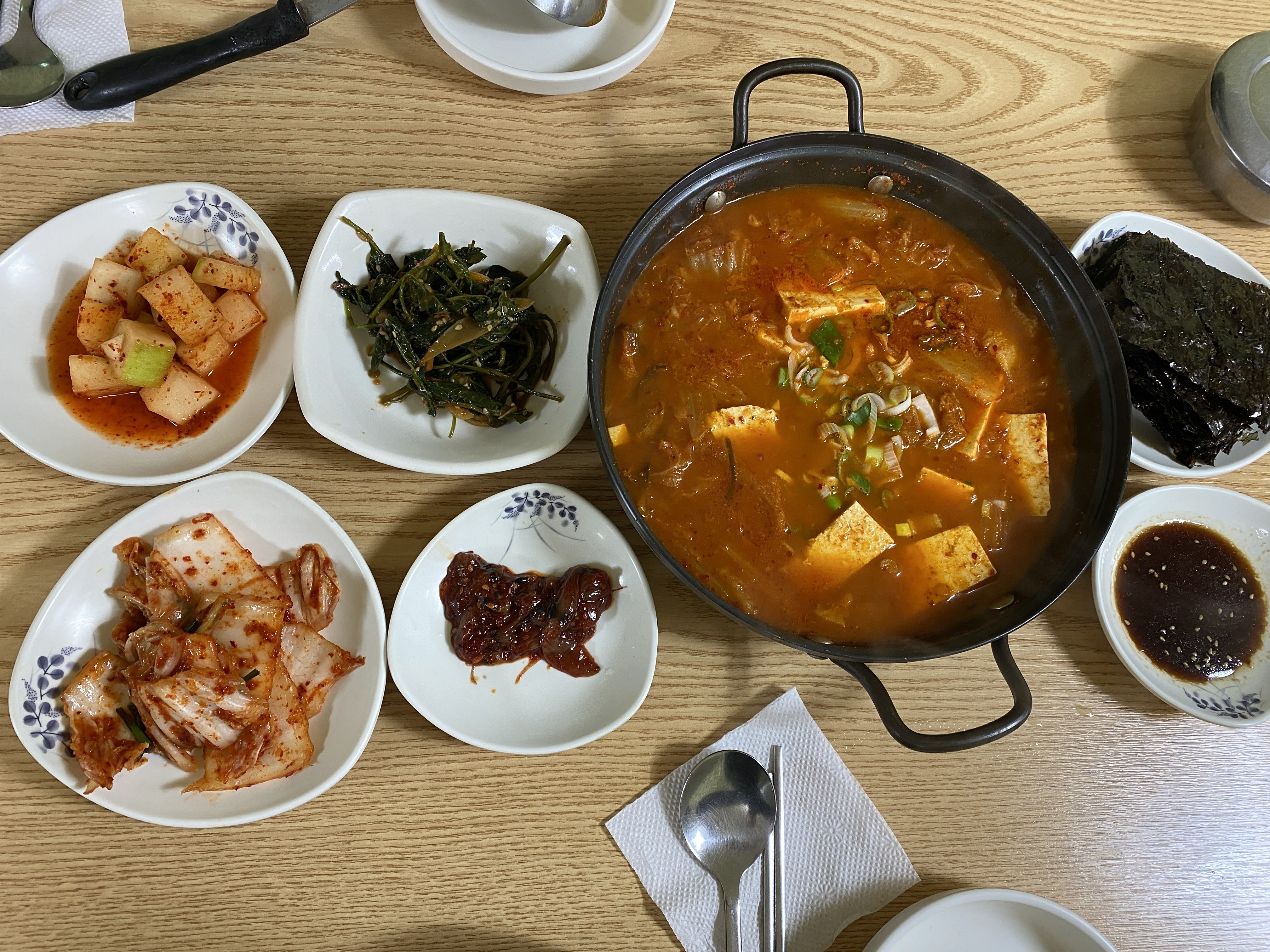 오늘의 백반은 김치찌개였다. 동태찌개 가격이 도무지 믿을 수 없어서 물어봤는데 2인 이상 시키면 되고, 가끔 백반에 메인으로 등장하다고도 알려주셨다.
