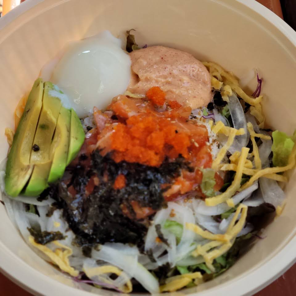 이건 연어포케 명란마요 아보카도 덮밥. 수란도 있고, 명란마요에 아보카도 등등.