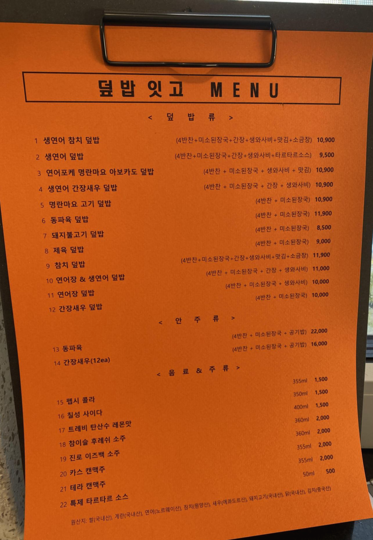 매일 산책하는 코스에 어느 날 갑자기 건물을 허물더니 어느 날 갑자기 정신을 차려 보니 새 건물이 떡하니 지어져 있었다. 그리고 또 어느 순간 덮밥 포장전문점이 생겼다는 현수막이 나붙어 펄럭이고 있다. 현수막에 찍힌 덮밥은 무척 맛나 보였다. 가격이 만 원 이상이라 일단 지켜만 보다가 사 먹었다! 일단 현수막은 너무 나풀거려서 못 찍고 입간판 사진으로 대체.