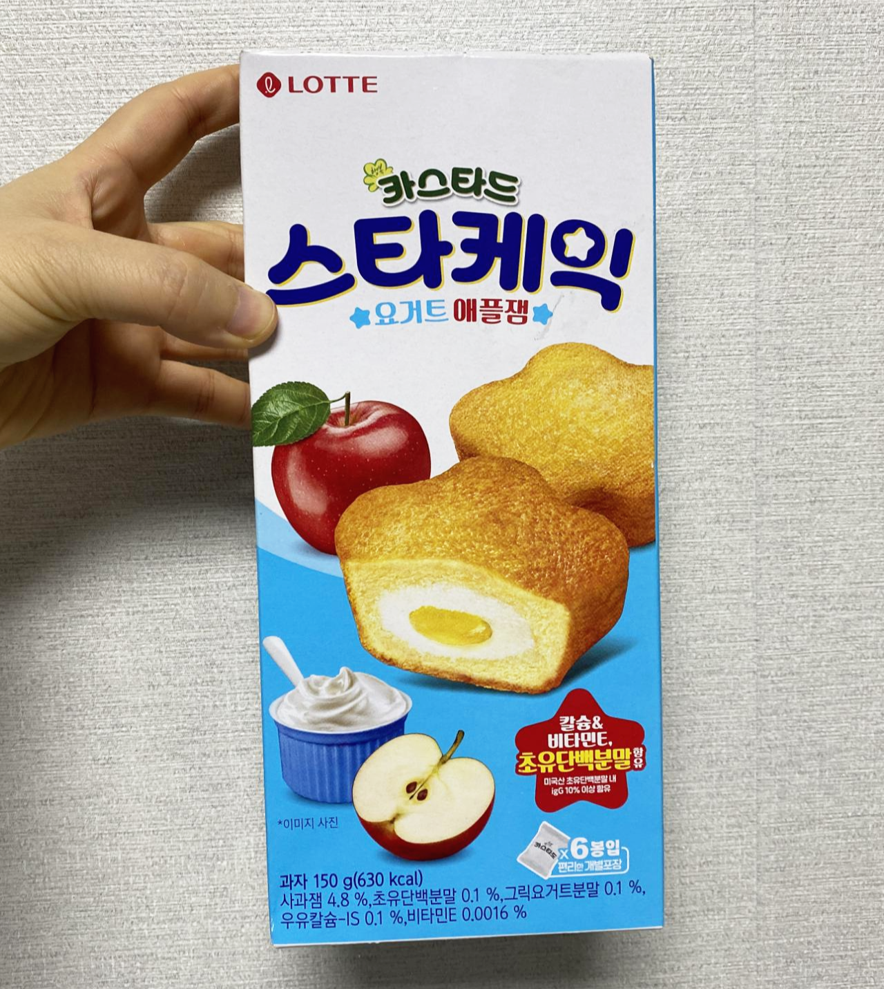 이번에 사 온 건 카스타드 스타케익이다. 요거트 애플잼이라고 작게 쓰여 있는 걸 보니 상큼하게 맛있을 거 같아서 샀다.