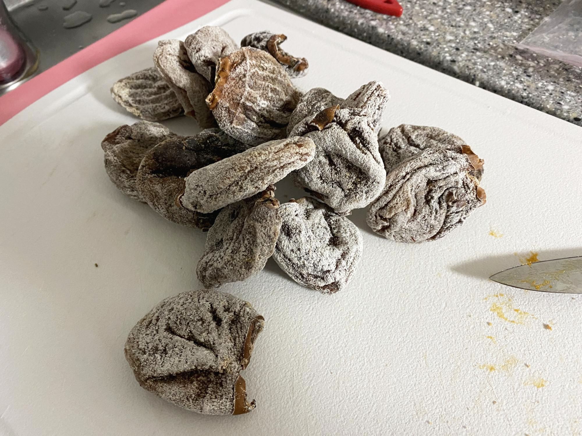 냉동 곶감을 꺼내서 살짝 녹이고 열심히 썰기 시작했다.