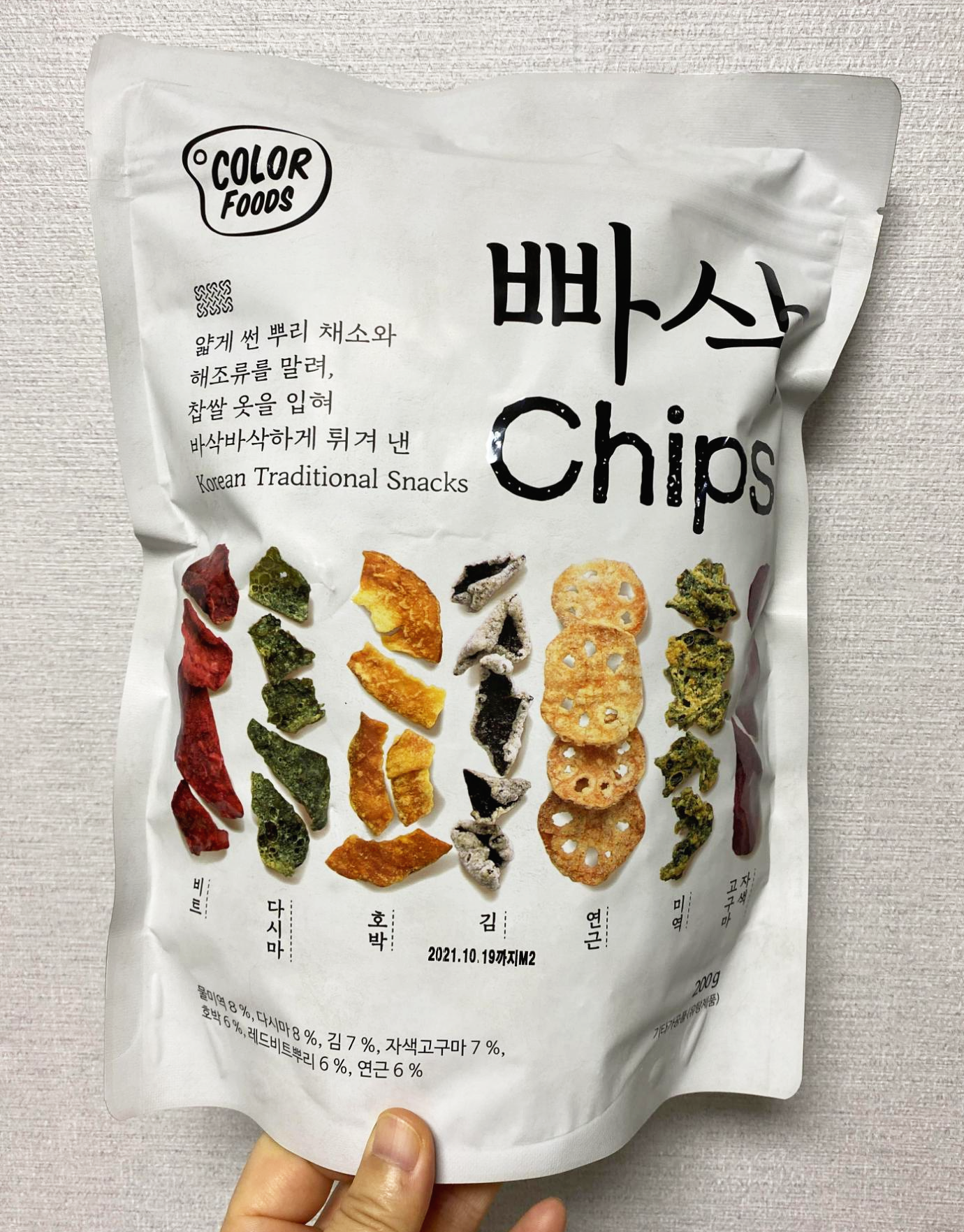 크리스피 베지칩이랑 비교하면 얘네가 좀 더 각각의 채소 맛이 잘 느껴지는 느낌. 해조류랑 비트 때문에 구성도 더 건강하게 느껴진다. 찹쌀물에 빠뜨려서 그런지 이름답게 빠삭하고 고소하고 맛있다.