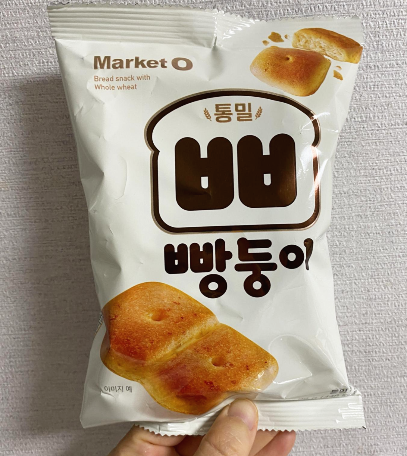 봉지 과자인데 디자인은 굉장히 단순하다. 빵 둥 이. 강렬.