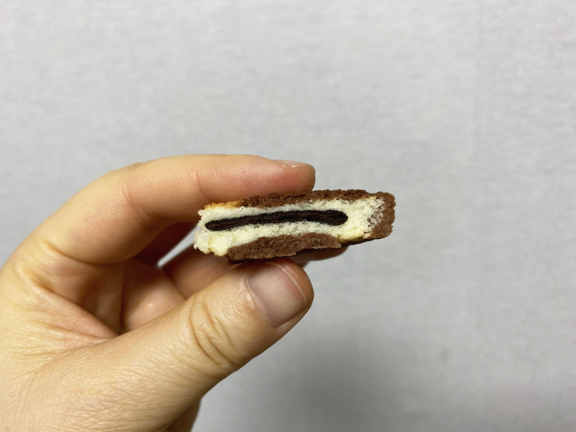 겉을 초코 쿠키가 한번 감싸고, 그 안에 그냥 쿠키 반죽, 그 안에 초코 크림이 들어 있는 3중 시스템이다.