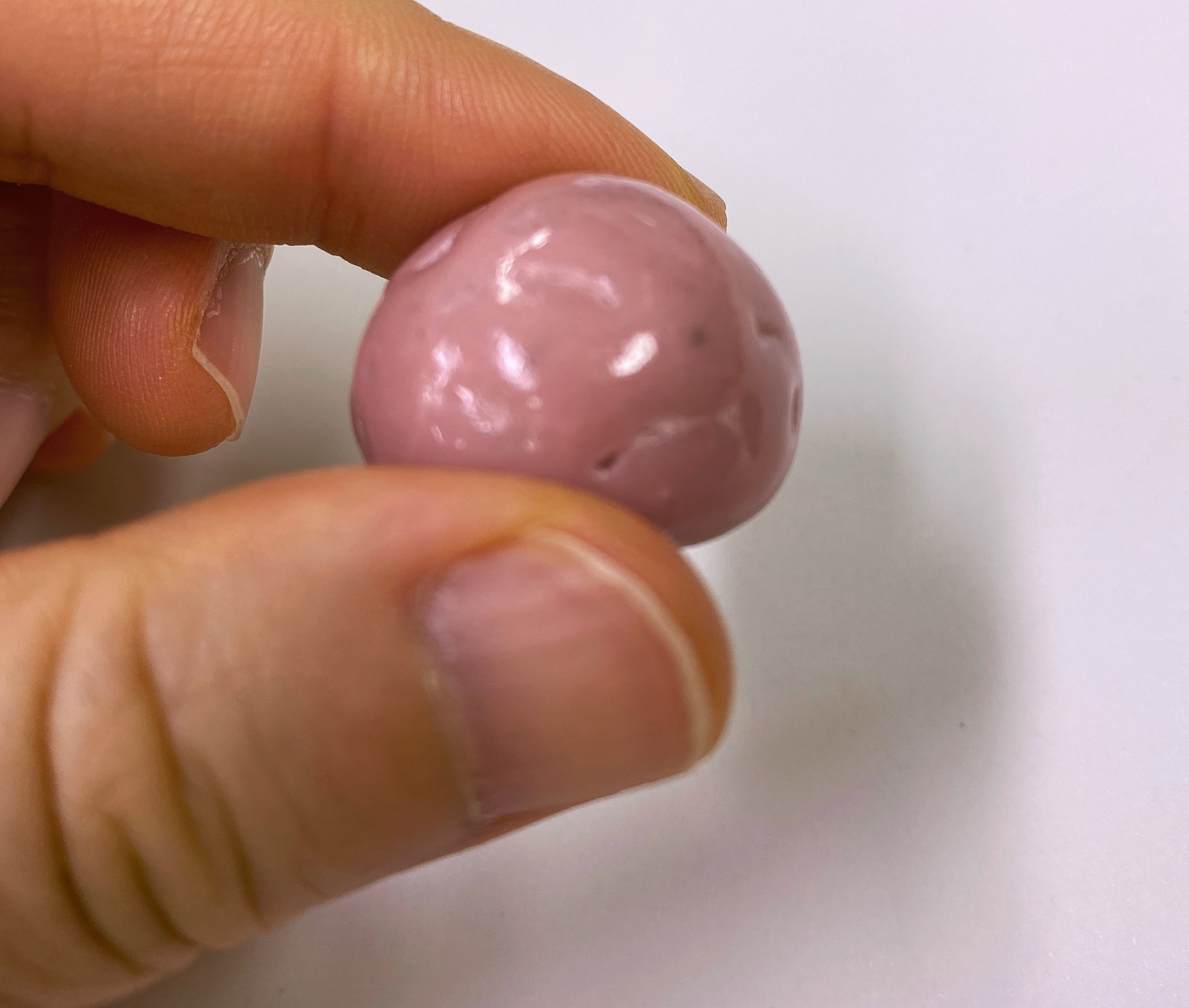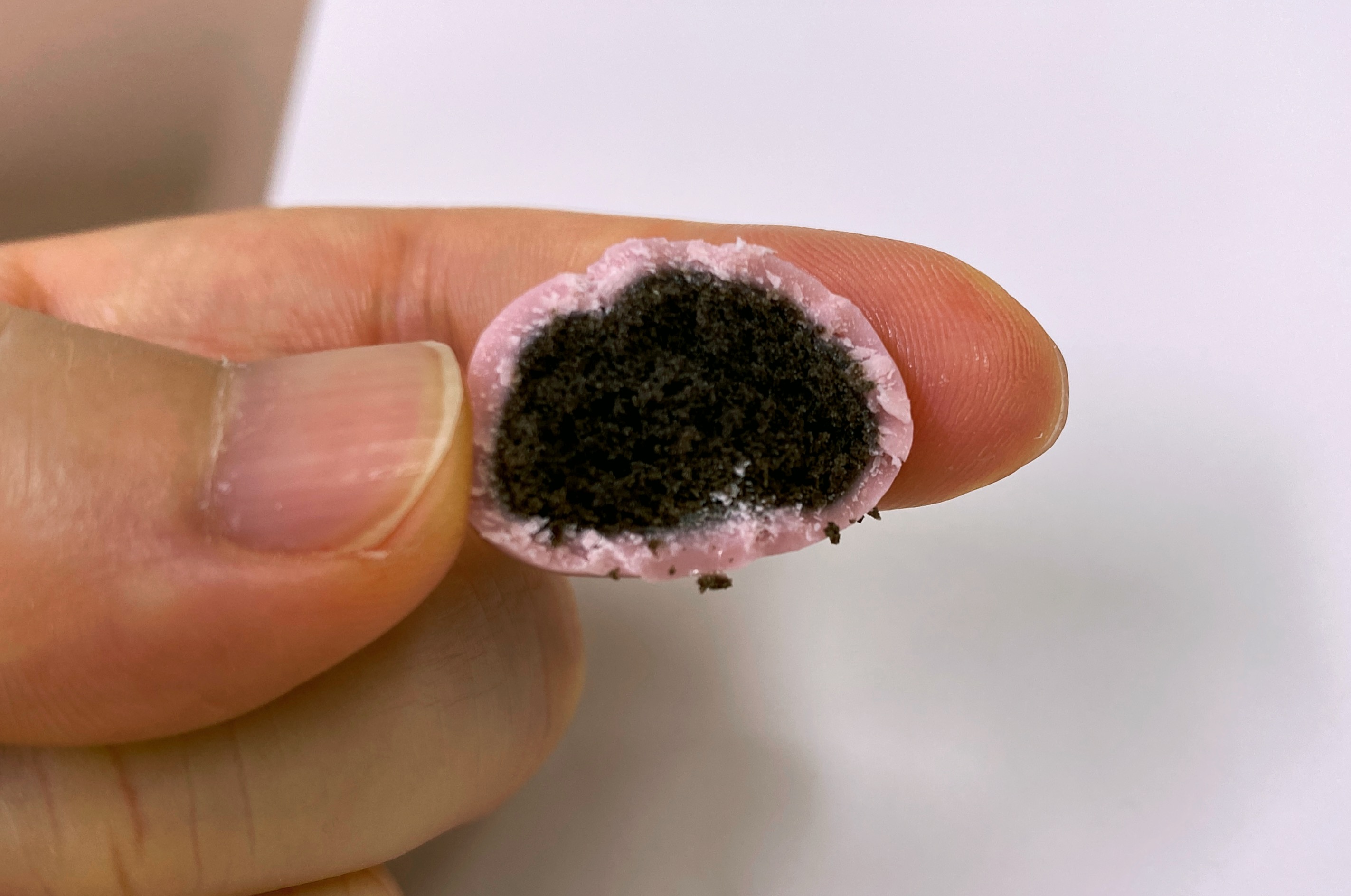 색이 밝아서 그런지 한층 더 광이 나는 거 같은 느낌. 물광을 머금은 초코볼이다. 안에 든 게 까매서 그런지 분홍색이 약간 탁해 보인다.