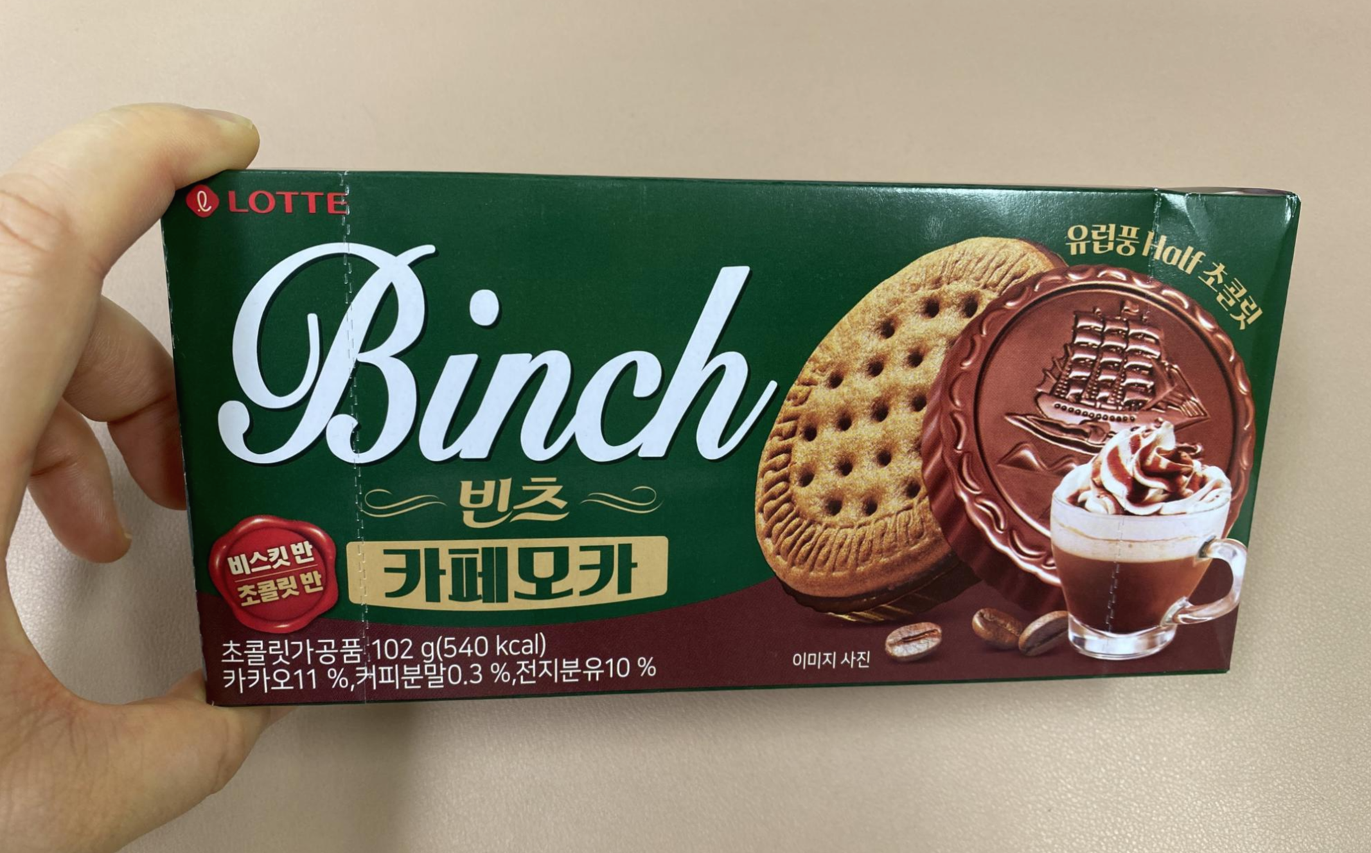 맛은 생각보다 카페모카 향이 풍기는 빈츠. 확실히 과자 부분에서 나는 향이 다르긴 하다. 그래도 기대보다는 카페모카 맛이 약한 편. 향은 좀 풍기는 편인데 내가 좀 쎈 걸 대해서 그런 거 같기도. 한번 먹어 봤으니 됐다.