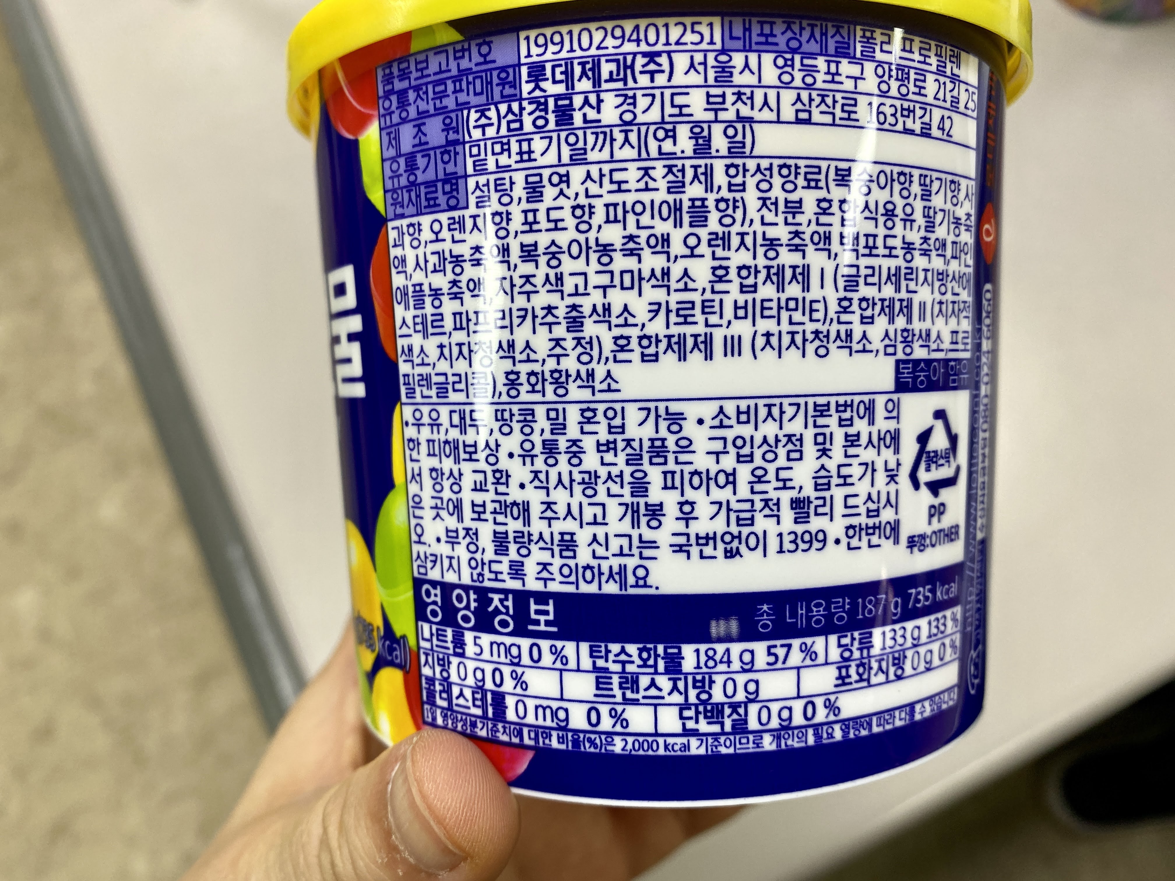 아무튼 좀 실망. 그래도 맛은 얼추 기억 그대로인 것 같아서 그걸로 위안 삼았다. 열심히 먹고 통은 잘 닦아서 배지 담는 통으로 써야겠다.