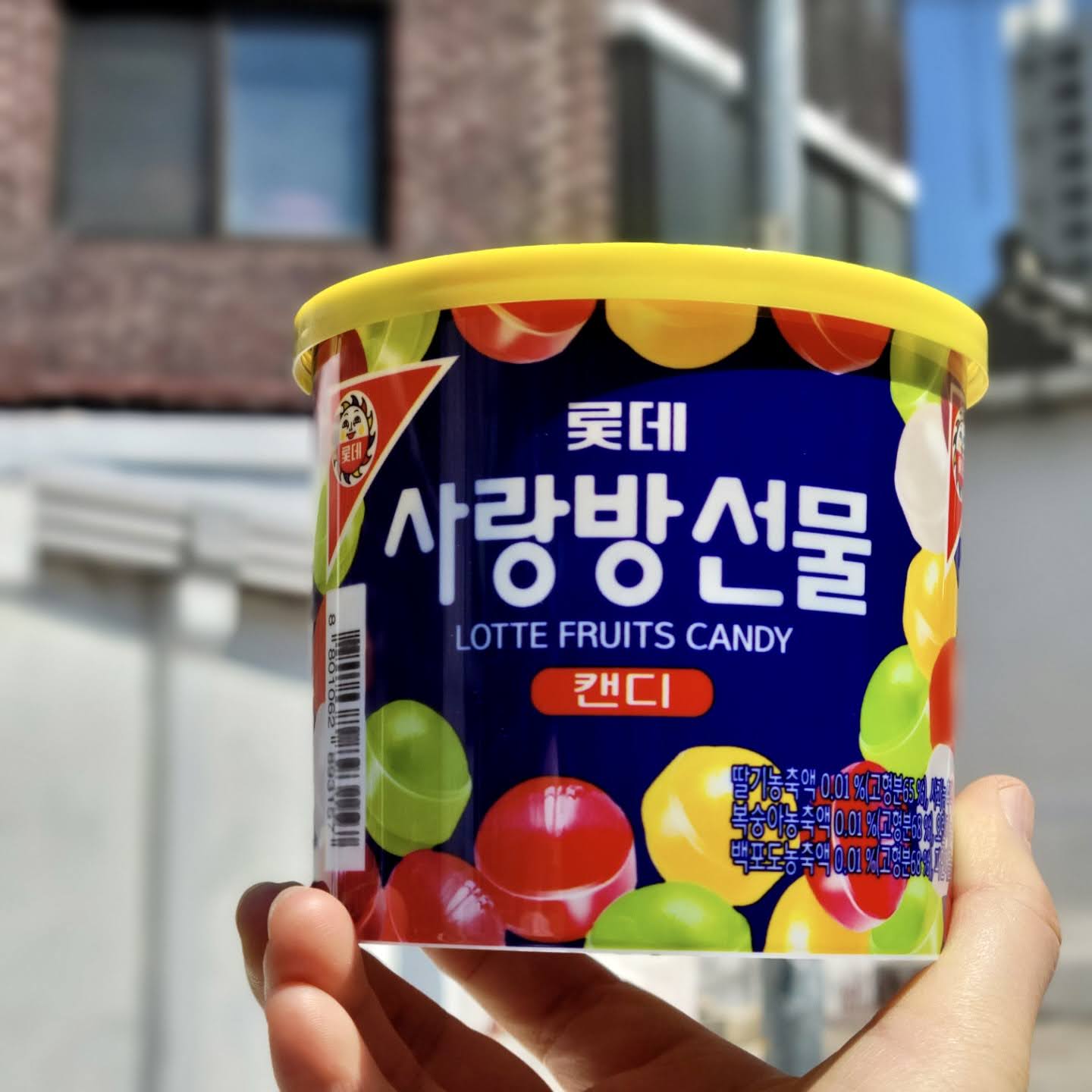 항상 아랫목에 할아버지가 드실 밥공기가 이불에 덮혀 있던 안방에는 내 손이 닿지 못하던 곳에 이 사랑방 선물이 있었다. 사랑방 선물이 두 개가 있었는데, 한 개는 진짜 사탕이 들었고, 다른 하나는 단추랑 실타래가 들어 있었다. 어른들이 모두 나가고 없으면 이불을 밀어서 옮기고는 이불을 밟고 올라가 몰래 사탕을 꺼내 먹고는 했다. 가끔은 사탕이 아닌 단추가 든 통을 집기도 했던, 그런 사연 충만한 사탕이다.