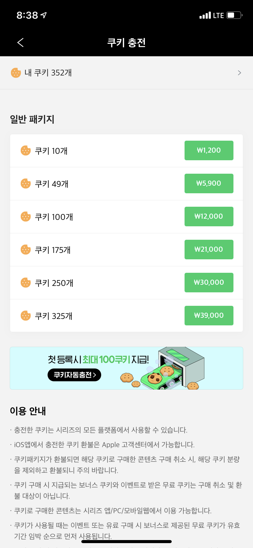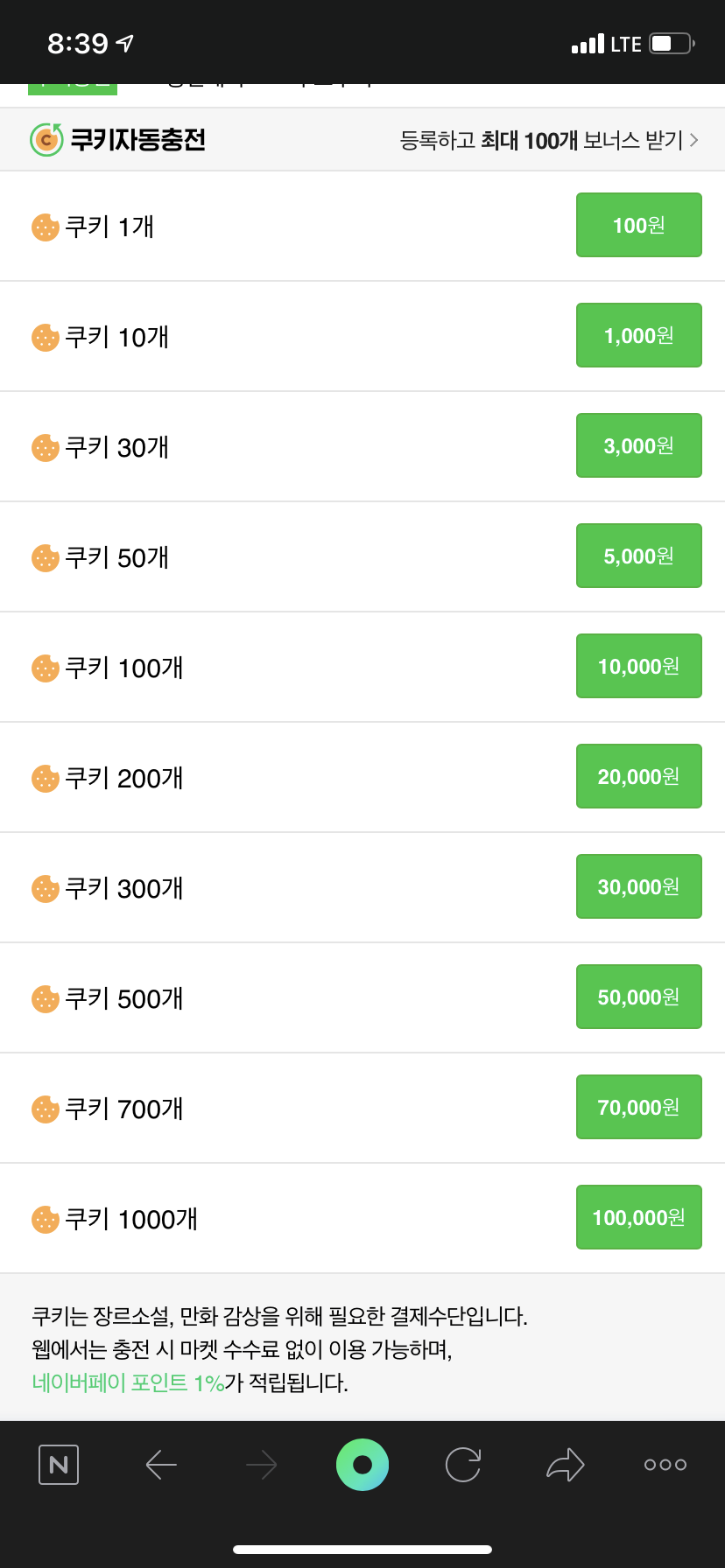 이번에 시리즈를 충전하려다가 친구한테 매번 이렇게 결제하다가 거지되겠다고 한탄하다가 친구가 왜 쿠키(네이버 시리즈는 쿠키라는 화폐 단위를 쓴다)가 그렇게 비싸냐고!! 자기는 500개 5만 원씩 충전한다고 하는 것이다! 넹? 5만원 짜리 메뉴는 본 적도 없는데?