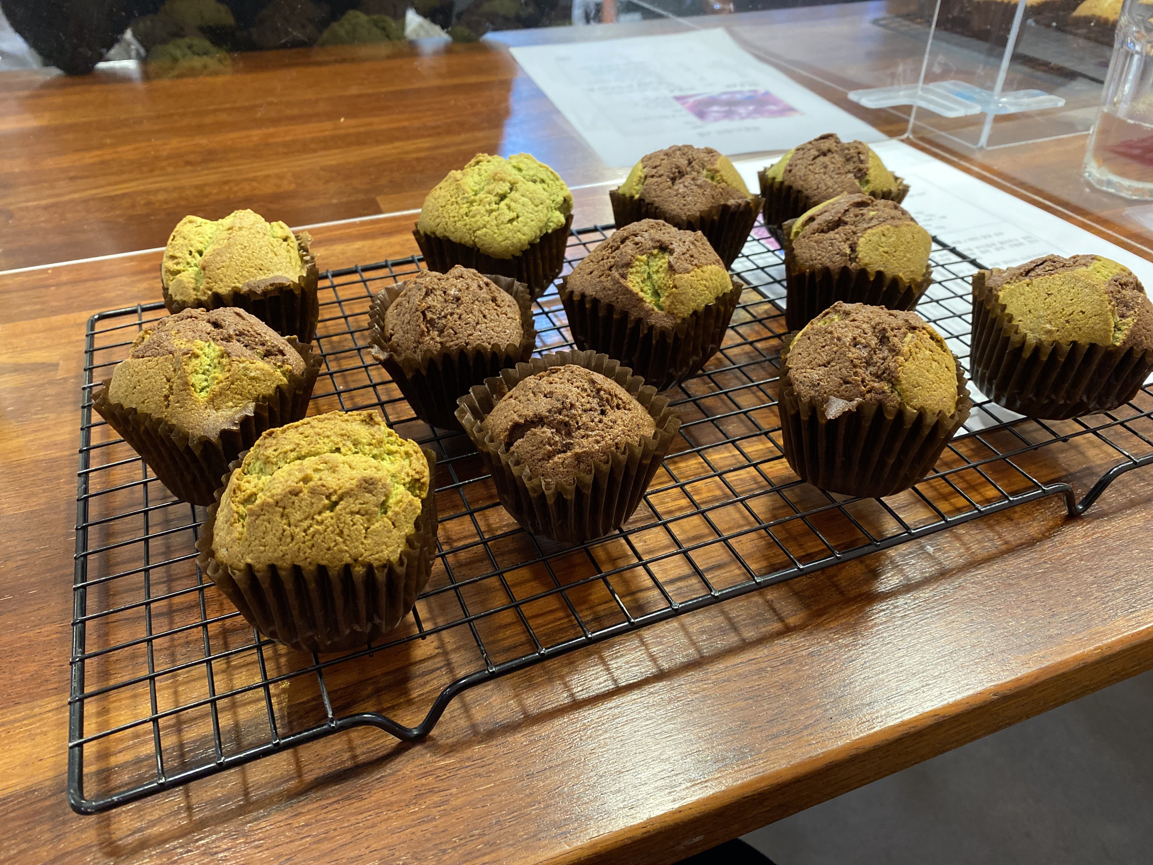 이 클래스에서는 각자 파운드 케이크 두 개만큼을 만들어 가는데, 취향에 따라 맛도 고를 수 있고 원하면 파운드 케이크가 아니라 머핀으로 구워갈 수도 있다. 아까 만든 반죽을 덜어서 그 안에 호두를 넣으면 호두 맛이 되고 녹차 가루를 넣으면 녹차 맛이 되는 기적!