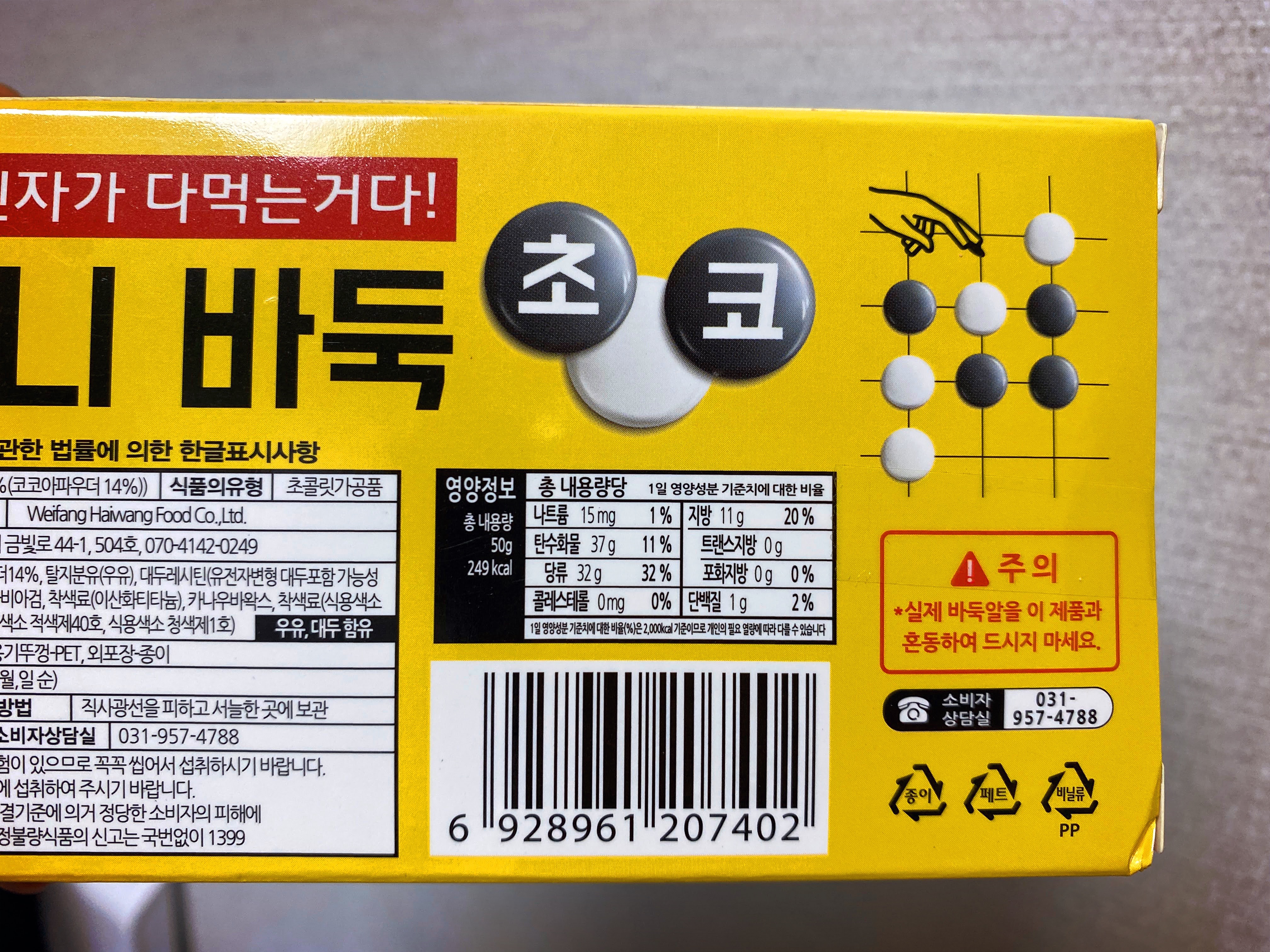 구성품은 겉에 쓰인 대로 바둑판과 흰돌과 검은돌 초코볼.