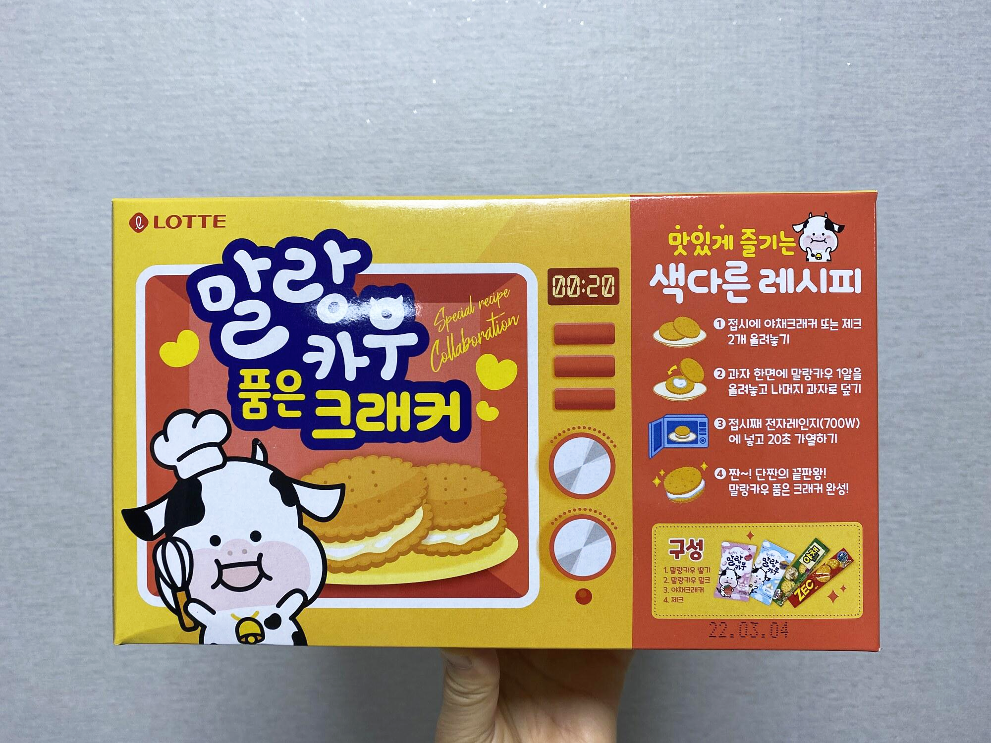 오늘도 내게 새로운 즐거움을 선사해 줄 과자를 찾으려고 이마트를 뒤적뒤적거렸다. 그러다 말랑카우 품은 크래커라는 과자를 봤다. 딱 보고 든 생각은 '대만 명물인 누가 크래커 같은 거려나?' 싶어서 좀 두근두근! 누가 크래커는 맛있지만 말랑카우로 안에 누가를 대체하면 더 맛있지 않을까 이런 기대를 잔뜩 품고 샀다