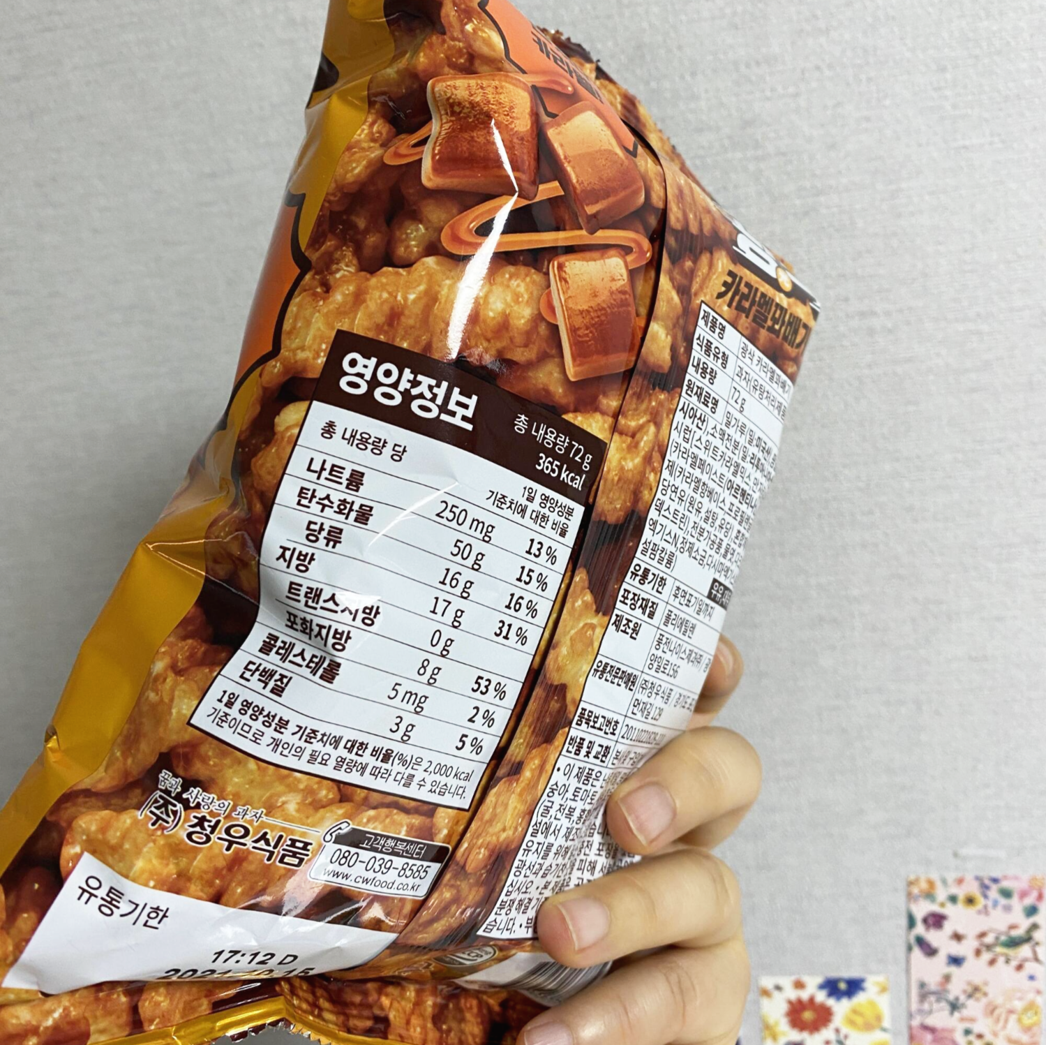 하지만 겉에 쓰인 거에 비하면 기대치보다 약간 카라멜 맛이 덜 농밀하다는 생각이 조금 들었다. 그래도 한 봉지 안 물리고 다 먹으려면 이 정도면 되겠다 싶었다. 꿀꽈배기의 좋은 맞수가 될 것 같다.