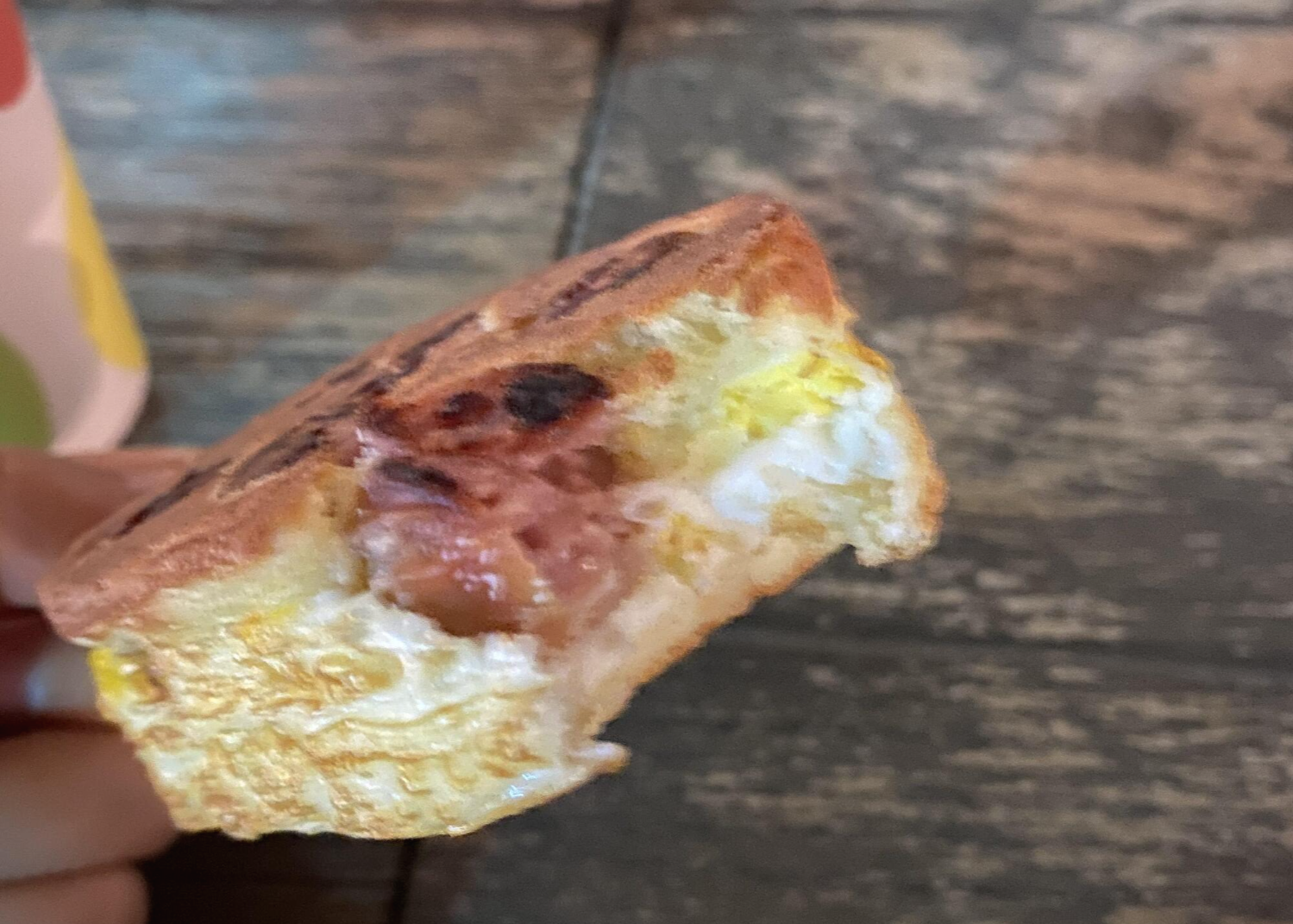 분명히 가만히 들고 찍었는데 빛을 흡수하느라 역동적으로 나와 버린 나의 소세지 계란빵.