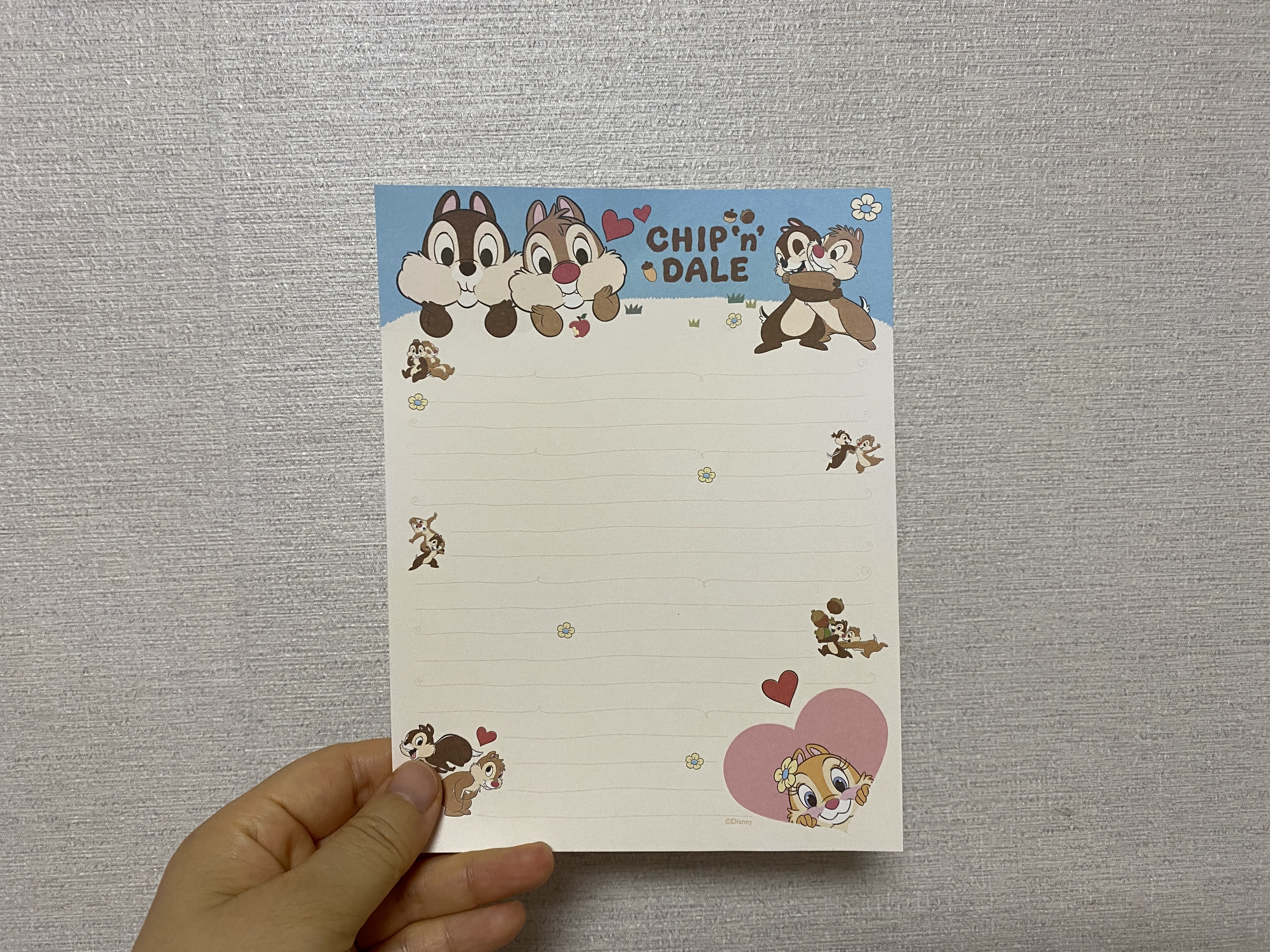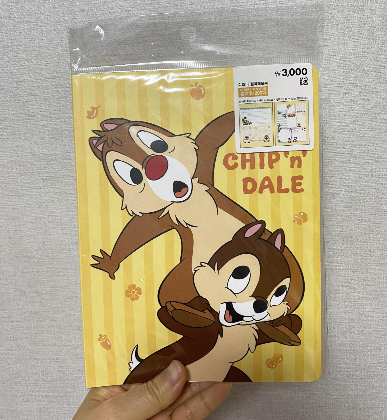 선물 받은 두 번째 물건은 칩앤데일 편지지. 누가 나한테 이걸로 편지 써 주면 좋겠다아.