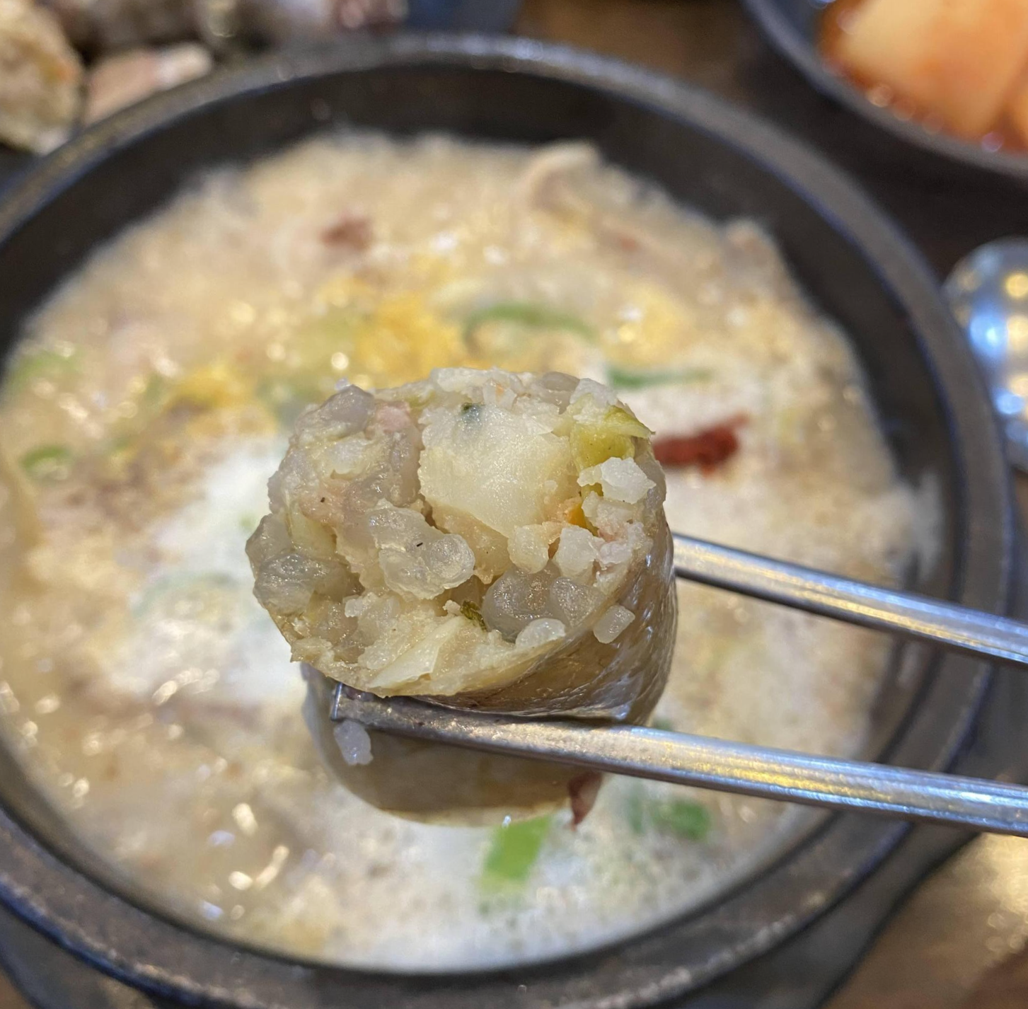 이건 순대국 정식에 딸려 나오는 순대와 특수 부위 모듬이다. 하얀 순대가 눈에 띈다. 특수 부위들은 쫄깃쫄깃 맛있고, 잡내도 없었다. 순대도 뭔가 고급져서 좀 더 깊은 맛이 난다고 해야 하나? 아무튼 마음에 들었다.