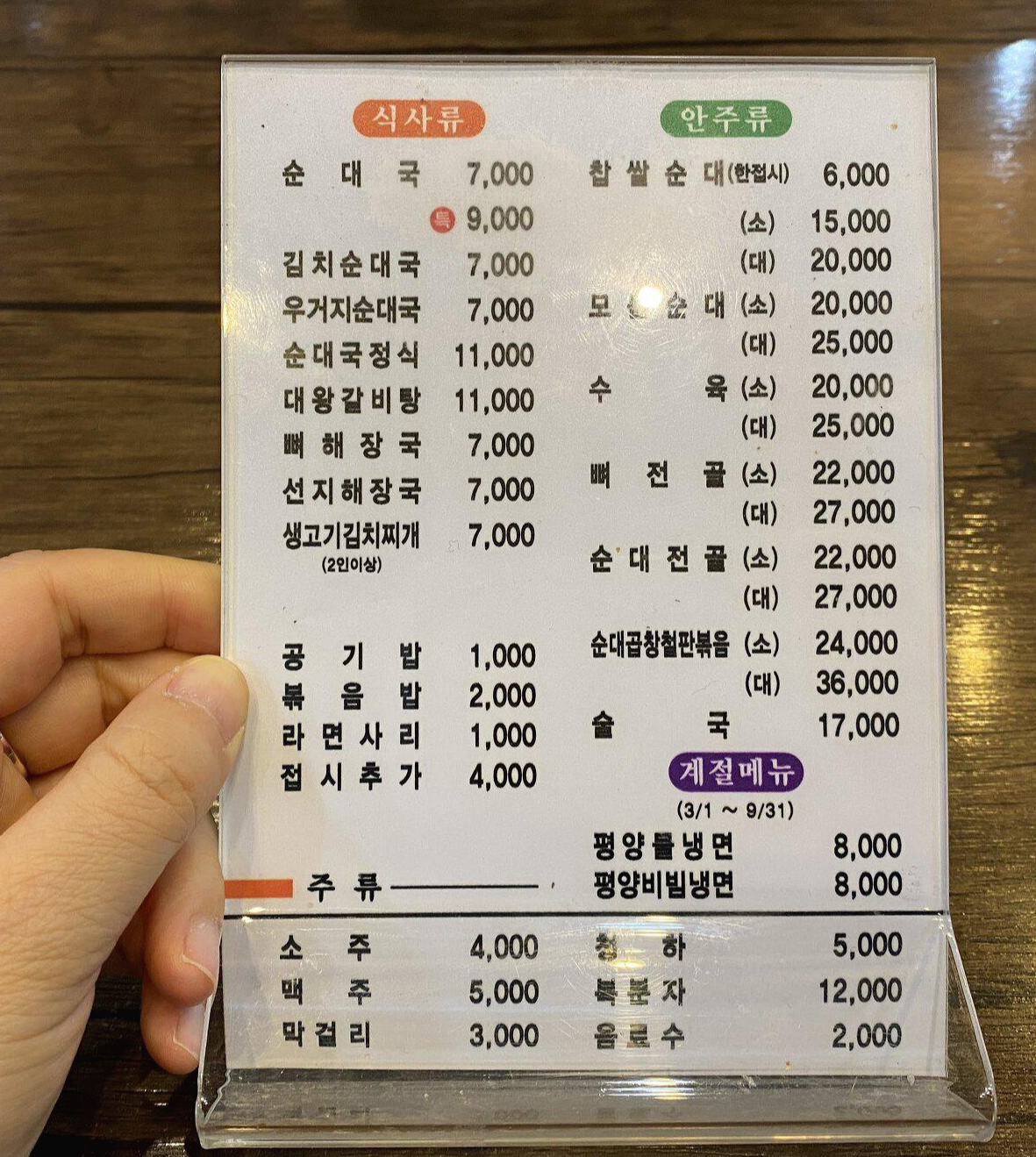 퇴근하자마자 간 거라 사람은 별로 없었고 메뉴는 순대 외에도 꽤 이것저것을 팔았다. 음, 사진으로 보면 다 맛있어 보인다.