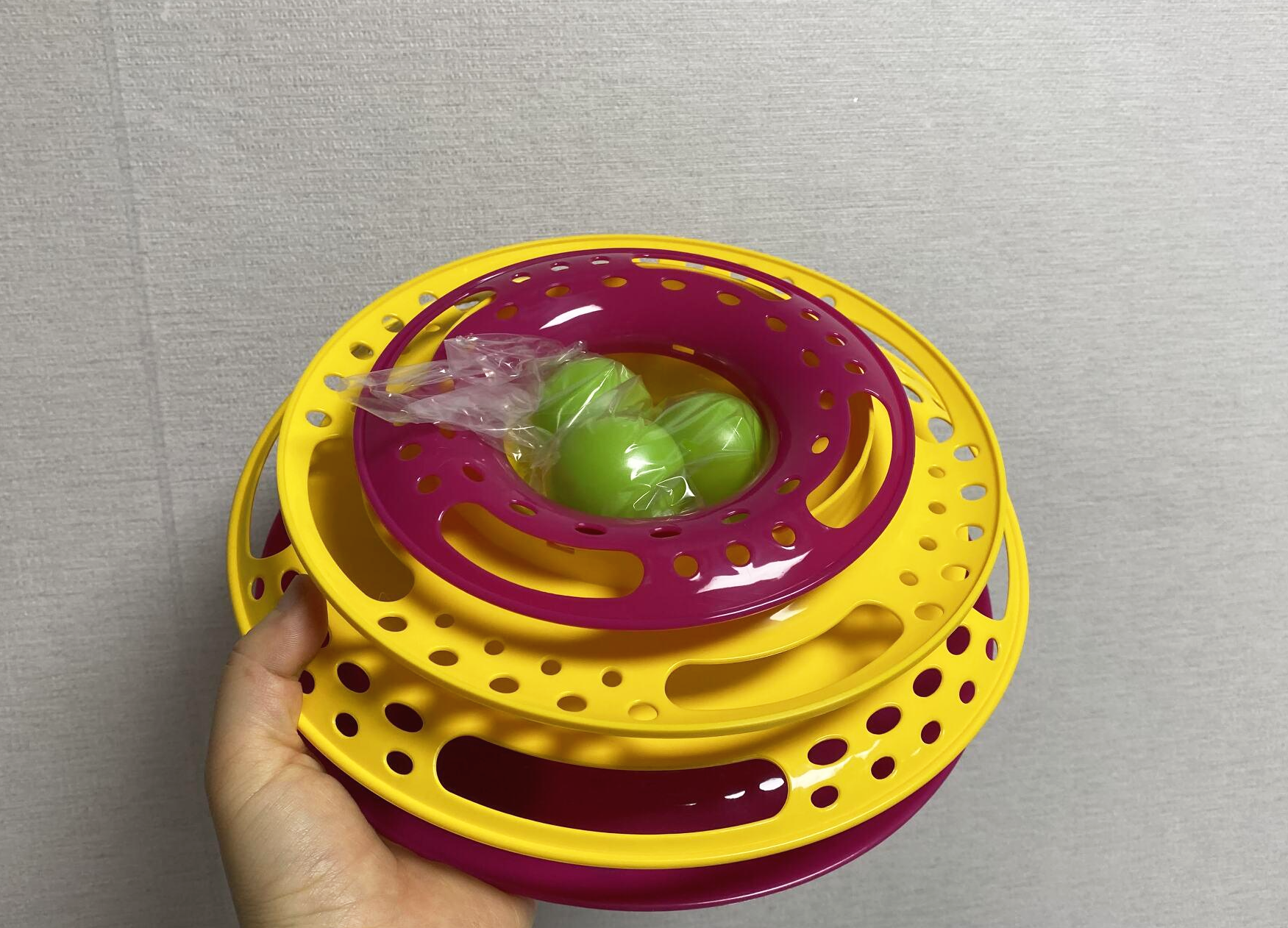 이번엔 설치형 장난감을 사 주고 싶어서 쇼핑몰 뒤적거리다가 토이거 팡팡 디스코 볼이란 장난감을 샀다. 부피도 너무 안 차지하고 공 3개로 굴리는 방식이라 좋아할 거 같았다.