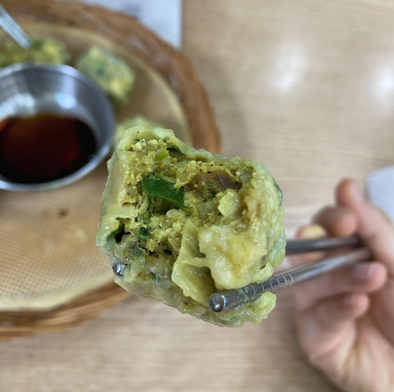 따뜻할 때 먹으면 맛있다. 우리가 이걸 한창 먹고 있는데 옆 테이블에 새 손님이 와서 만두를 주문했지만, 우리가 먹은 게 마지막 만두였다고 한다!