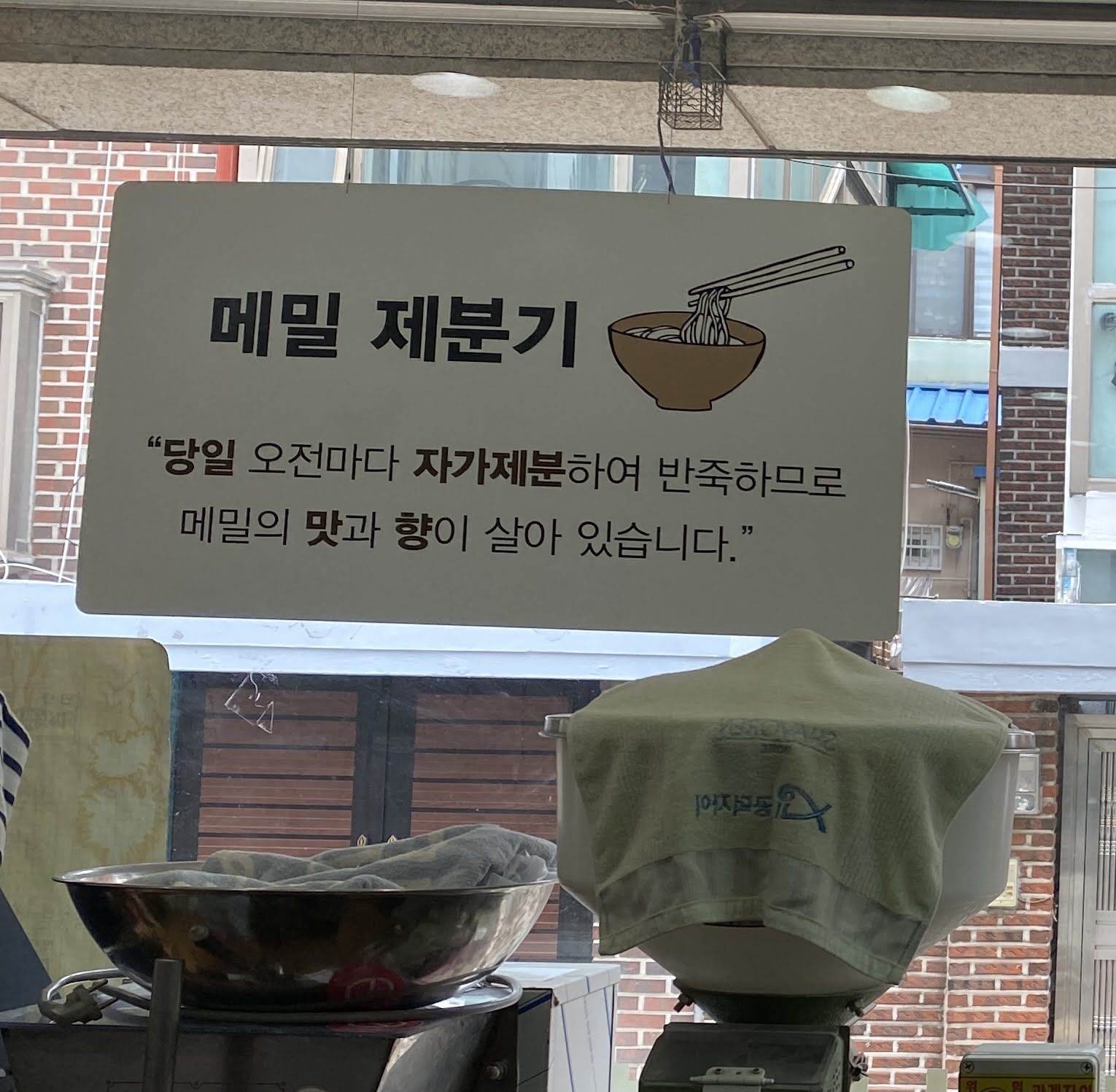 여기가 유명한 게 메밀을 제분해서 반죽하기 때문이다! 그러니까 커피로 치면 원두 로스팅해서 파는 곳이라고 해야 할까?
